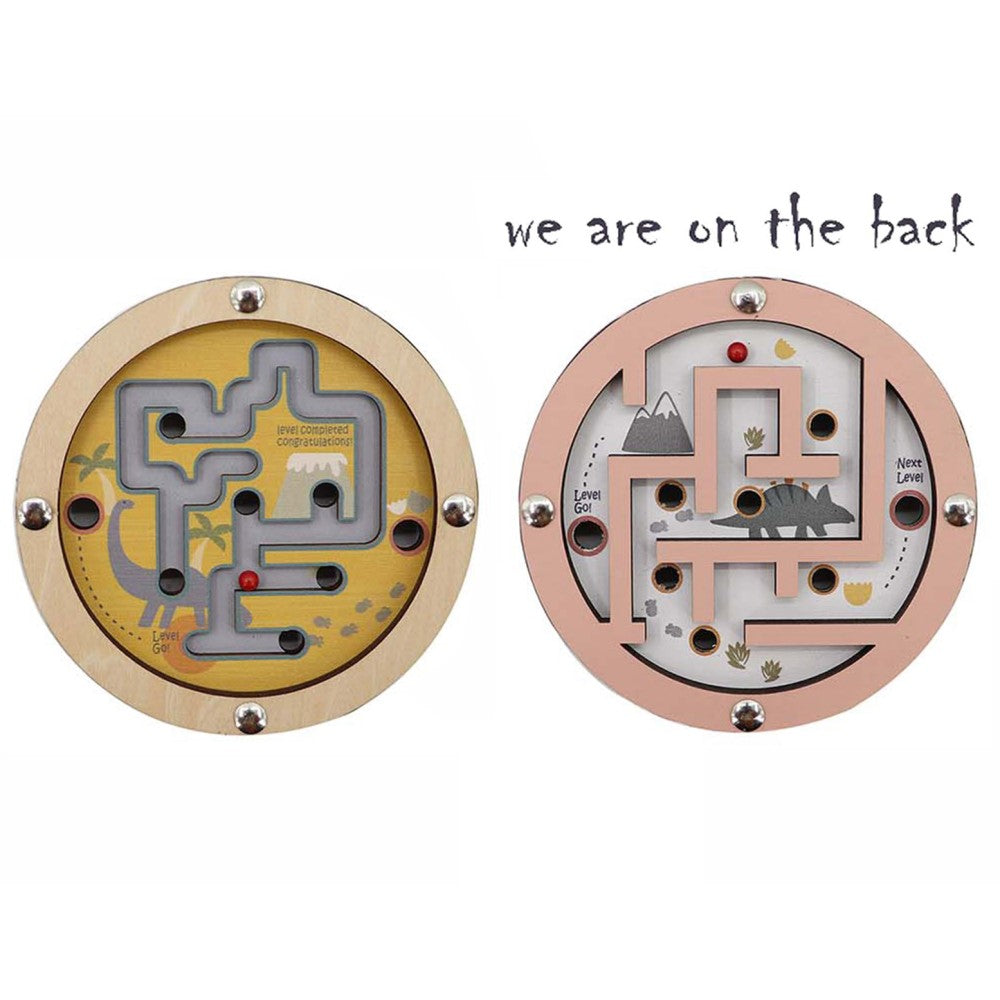 Kids Double Sided Wooden Maze Game - Dinosaur