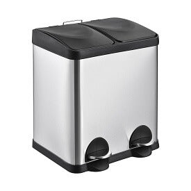 Dual Rubbish Bin 2 x 30L Garbage Can Silver - 60L