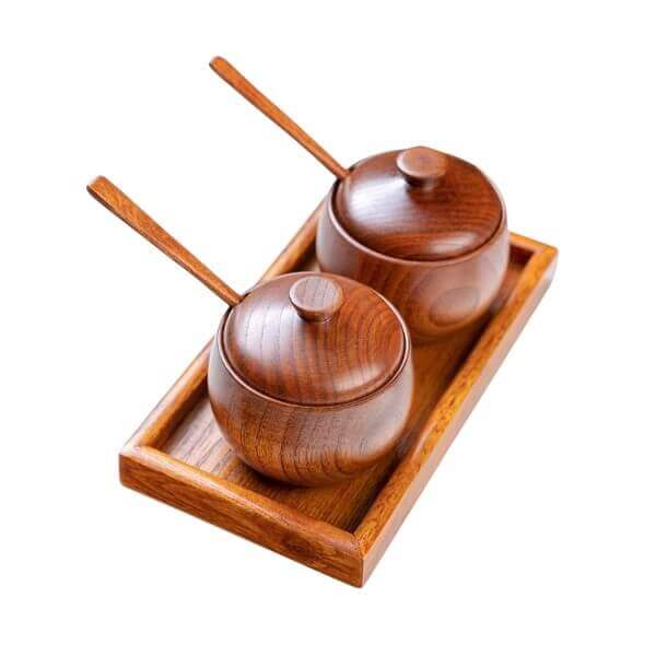 Set of 2 Nested Leaf Carved Handcrafted Trays
