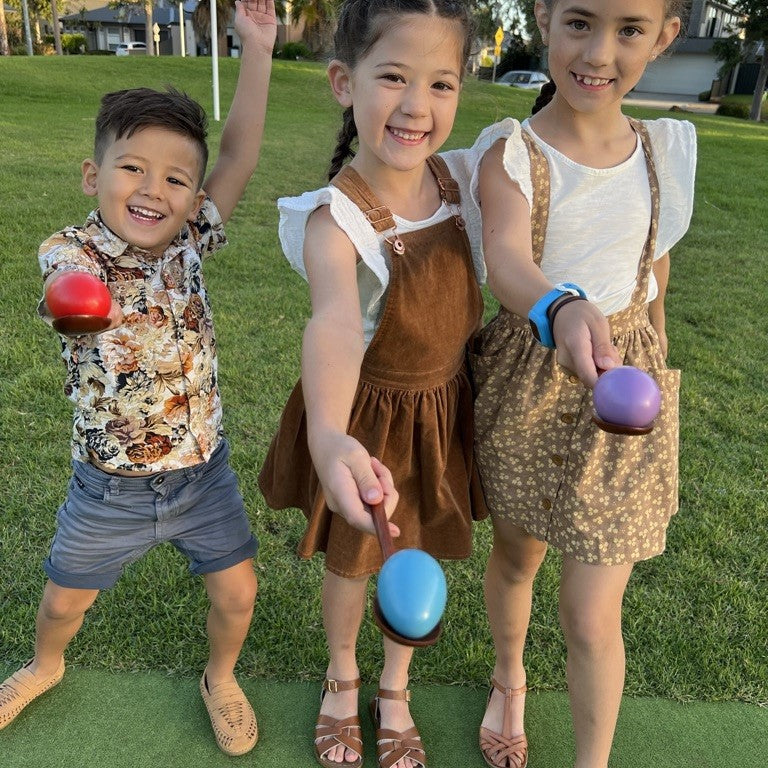 Our Egg & Spoon Set is made completely out wood. You can use this game over and over again. It's great for balancing, hand and eye coordination and colour recognition. Our Hacky Sack Bags will have everyone in giggles. Choose your favourite colour and jump in and see who is the fastest Hacky Sack jumper! This fun 2 in 1 game will be a hit at birthday parties and events.