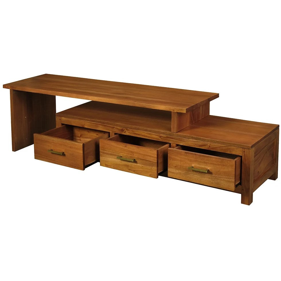 The 3 Drawer Extendable Entertainment Unit in light brown offers ample storage and a sleek design for your media needs. With three drawers and an extendable feature, this unit provides a functional and stylish option for your living space. Enjoy up to 50% more storage capacity while adding a touch of sophistication to your home.
