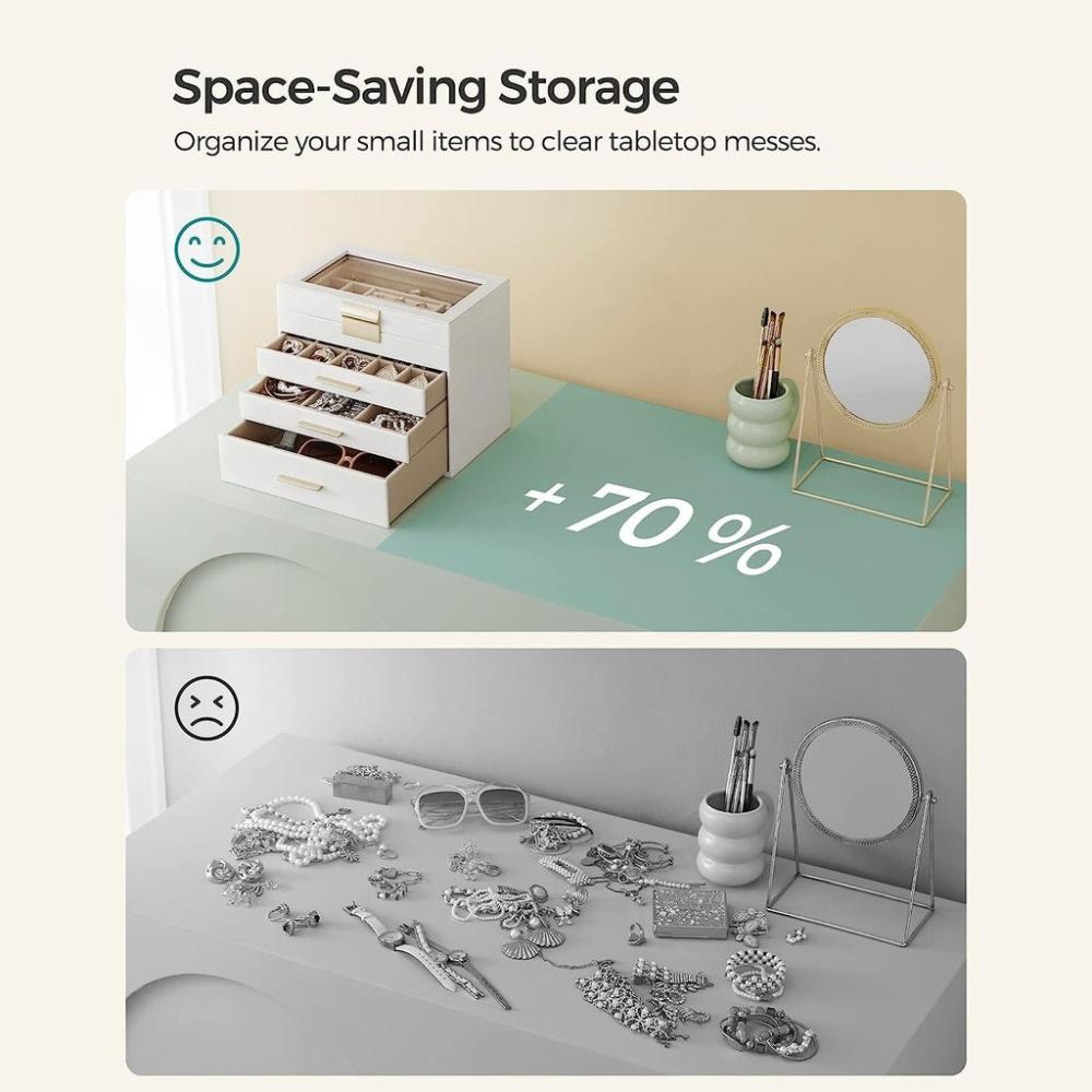 Clear Glass Lid: The see-through glass lid of this jewelry organizer allows you to see and find your favorite jewels at a glance while protecting them from dust, keeping your jewelry ready to wear and clean