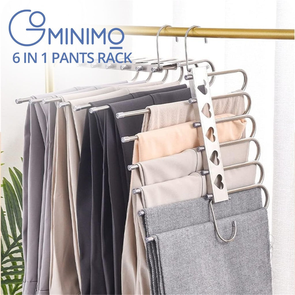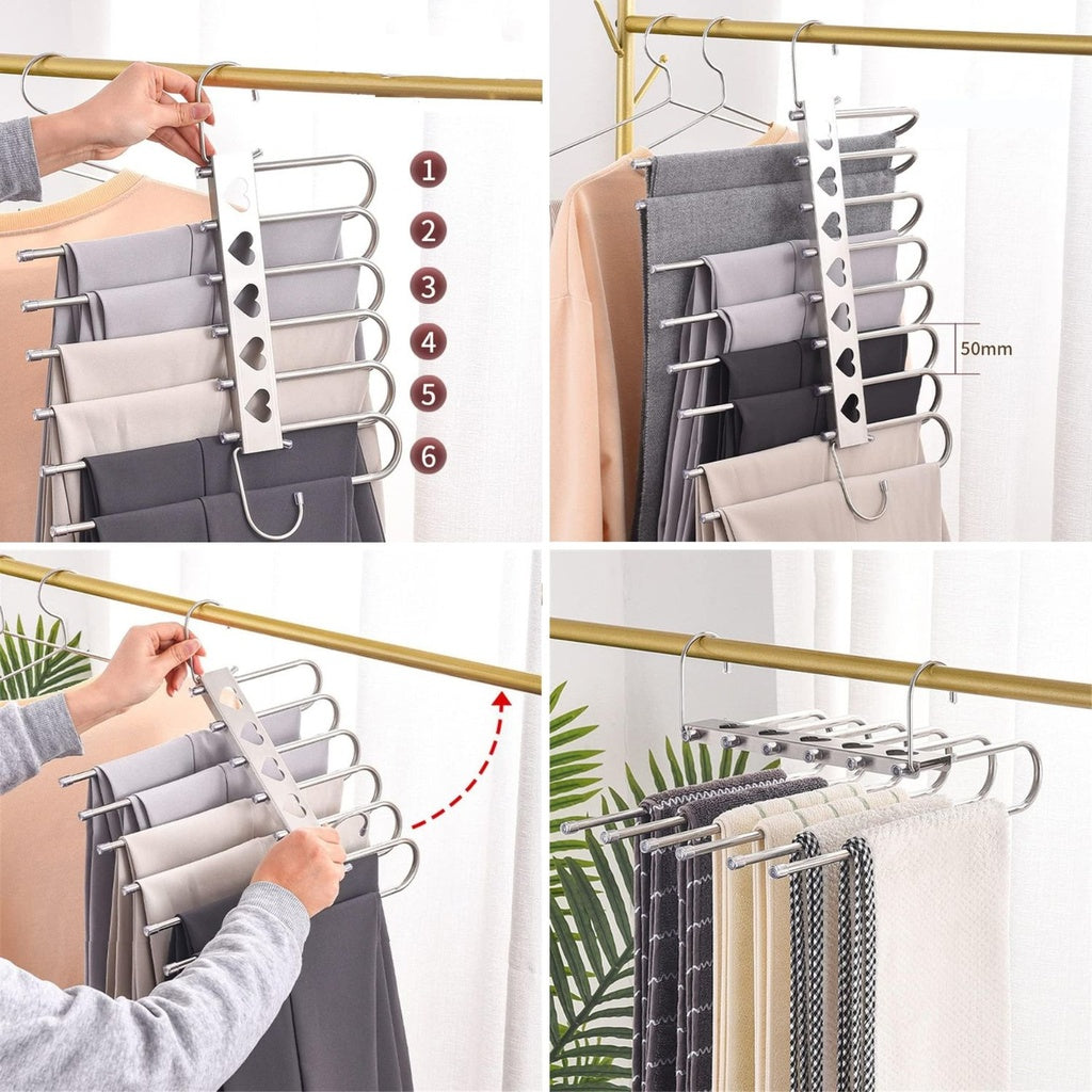 - 6 in 1 stainless steel pants rack
