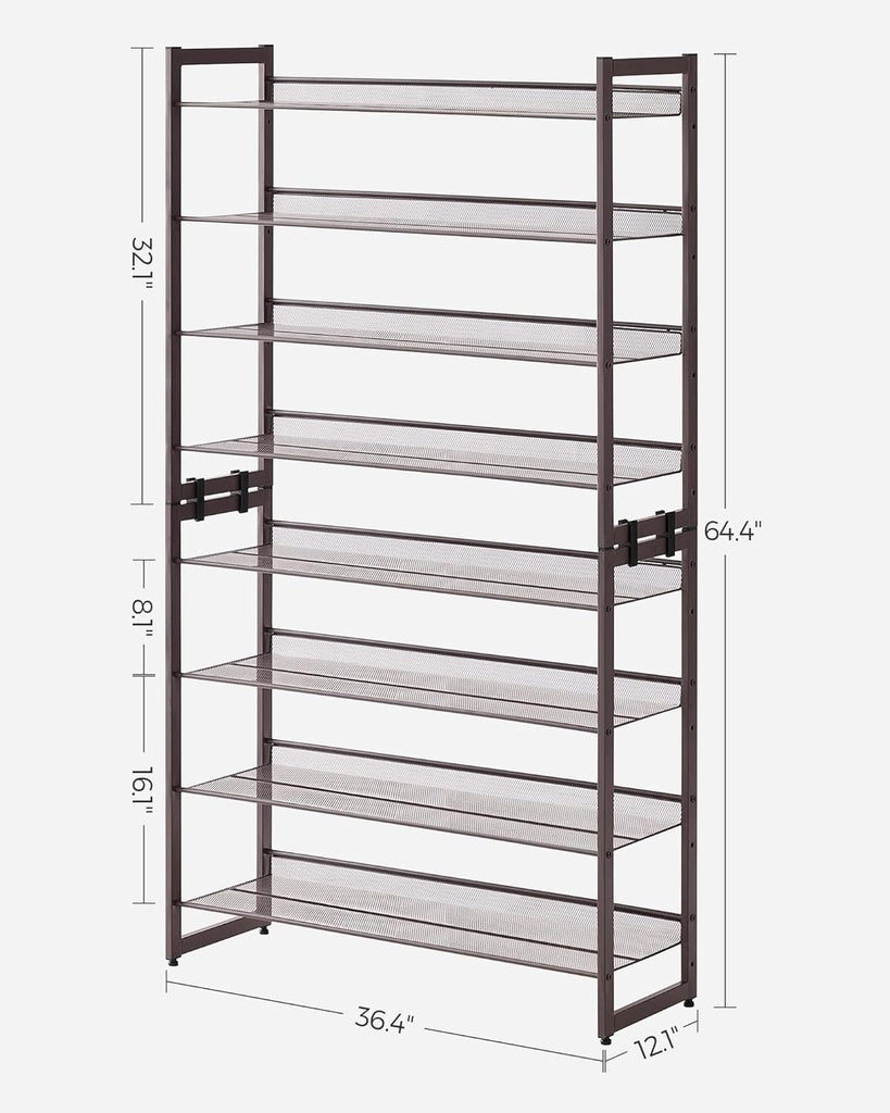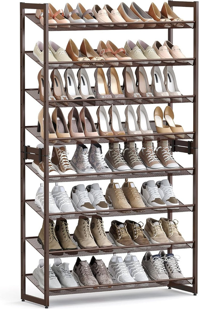 - Detachable & Stackable Shoe Rack: 8 tier tall shoe rack organizer can split into 2 complete 4-tier shoe racks for different spaces of the closet, bedroom, entryway and garage