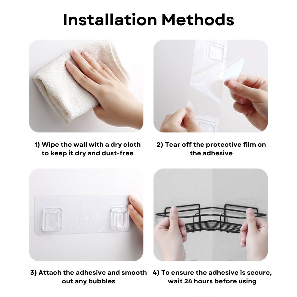 - Packing Includes: 1x 2 pack of the corner shower caddy, 1x 4 pcs of adhesive