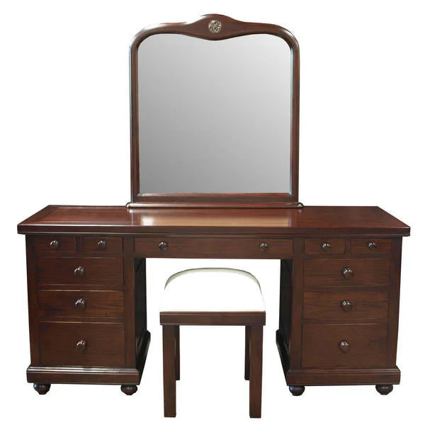 This Antoinette Wooden Dressing Table is an elegant and functional addition to any bedroom. Crafted from high-quality Rose Mahogany wood, it offers both style and durability. Its spacious top and multiple drawers provide ample storage for all your beauty essentials.