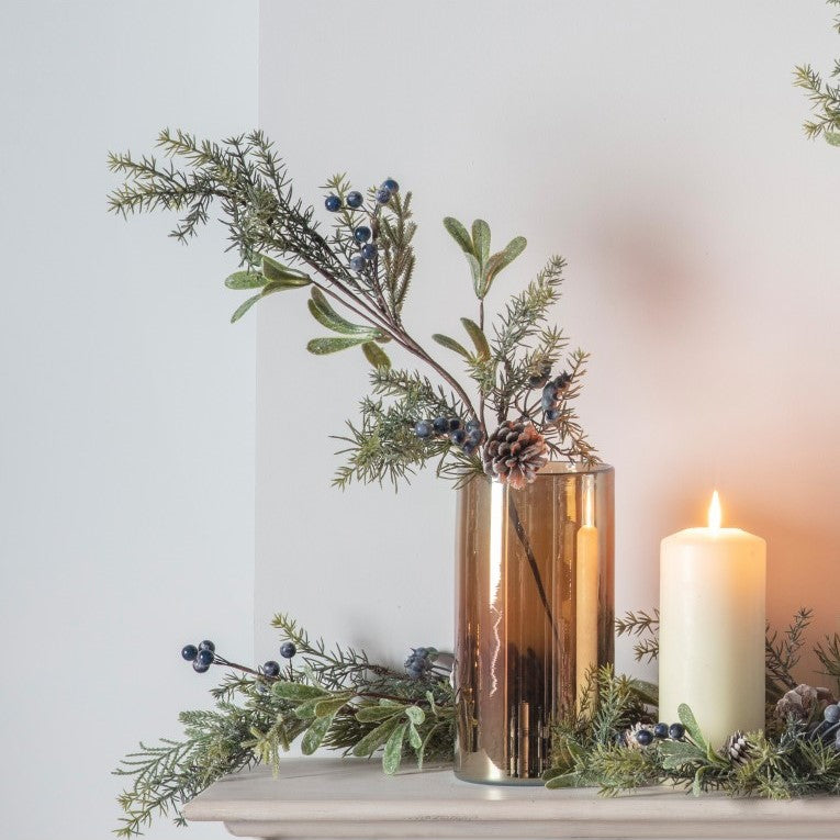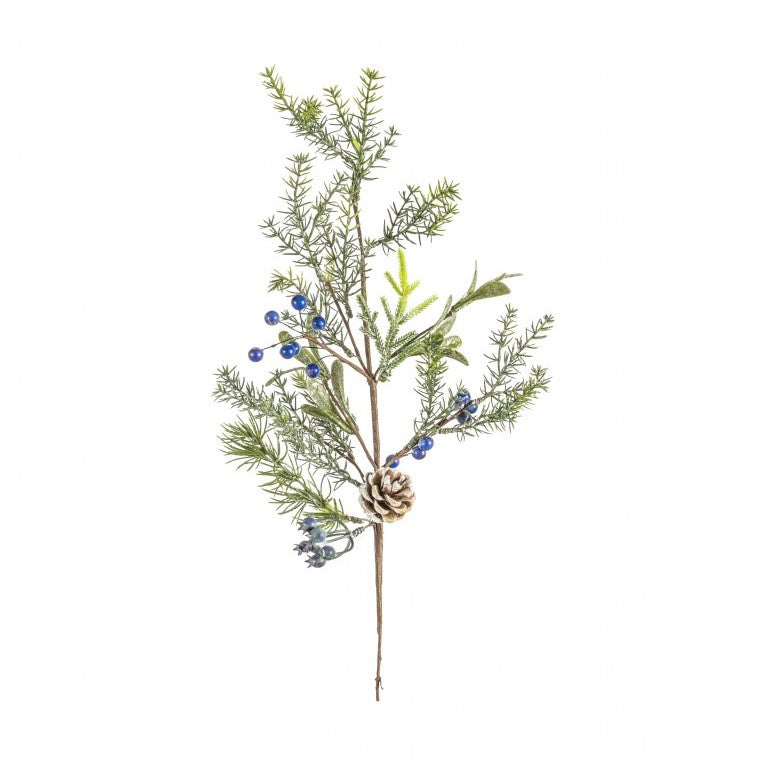 Welcome the season with a unique decorative artificial stem. Featuring sloe berries with deep frosty blue hues and pale green pines and leaves, this spray will give your home a homely and rustic charm. Take the plunge and bring the outdoors in! Matching items available.