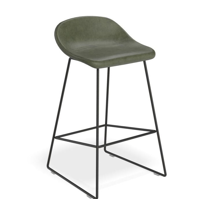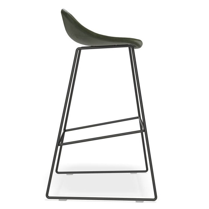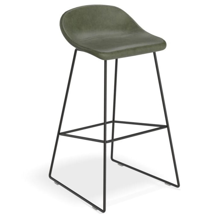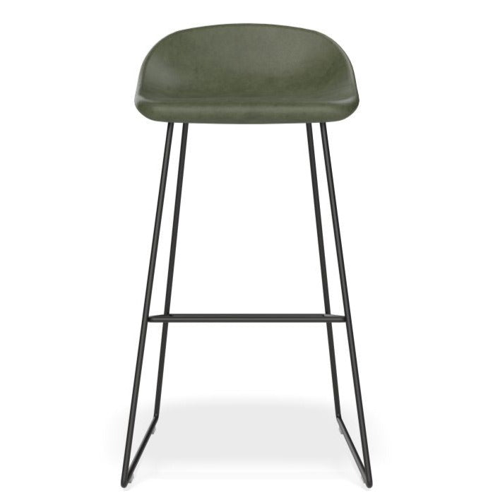 The Pop Stool with Black Frame and Upholstered Vintage Green Seat offers a touch of sophistication and warmth to any bar or dining area. With a sleek black frame and easy-to-maintain upholstery, this stool is both stylish and practical. Available in 2 sizes to fit your needs.