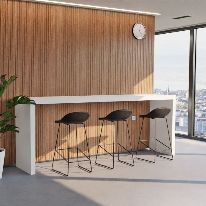 The Pop Stool with Black Frame and Upholstered Vintage Black Seat offers a touch of sophistication and warmth to any bar or dining area. With a sleek black frame and easy-to-maintain upholstery, this stool is both stylish and practical. Available in 2 sizes to fit your needs.