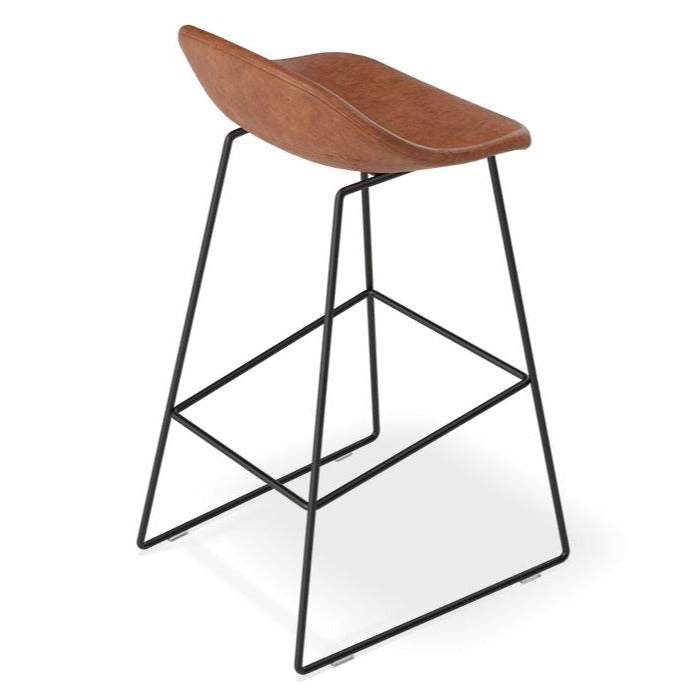 The Pop Stool with Black Frame and Upholstered Vintage Brown Seat offers a touch of sophistication and warmth to any bar or dining area. With a sleek black frame and easy-to-maintain upholstery, this stool is both stylish and practical. Available in 2 sizes to fit your needs.