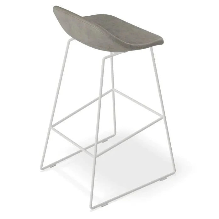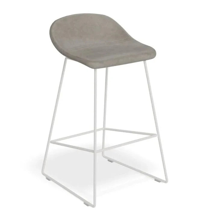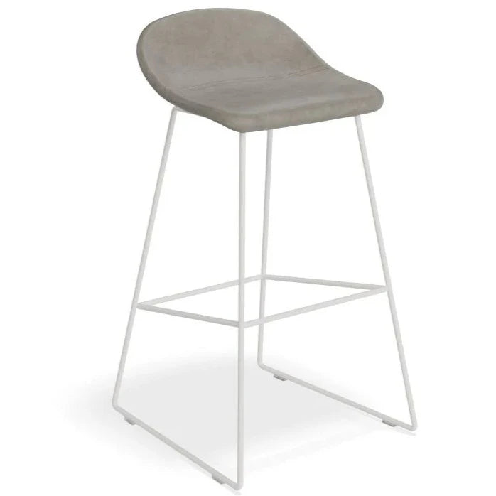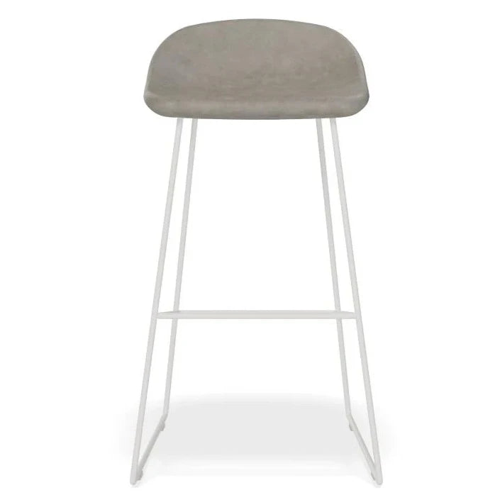 The Pop Stool with White Frame and Upholstered Vintage Grey Seat offers a touch of sophistication and warmth to any bar or dining area. With a sleek white frame and easy-to-maintain upholstery, this stool is both stylish and practical. Available in 2 sizes to fit your needs.