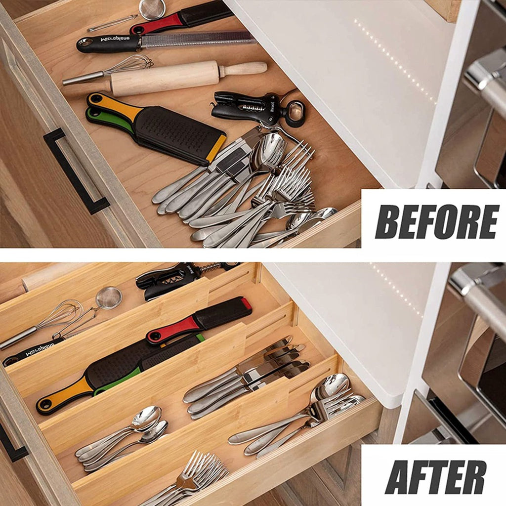 Our drawer dividers are a multi-functional solution suitable for kitchen drawers, office desk drawers, and more. Keep your belongings neatly separated and organized for easy access.
