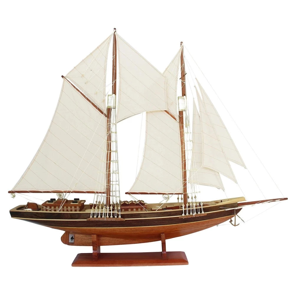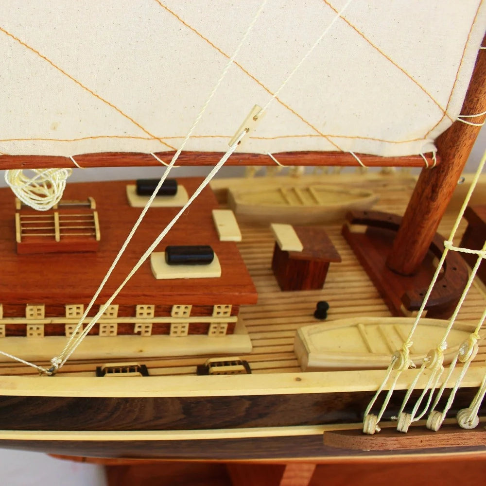 Discover the legacy of the Bluenose II with this meticulously crafted handmade model ship. A true masterpiece, this 70cm replica captures the spirit of the celebrated Canadian schooner and its rich history as a racing vessel and fishing workhorse. A must-have for any maritime enthusiast, this model ship is a symbol of Nova Scotia's proud heritage.