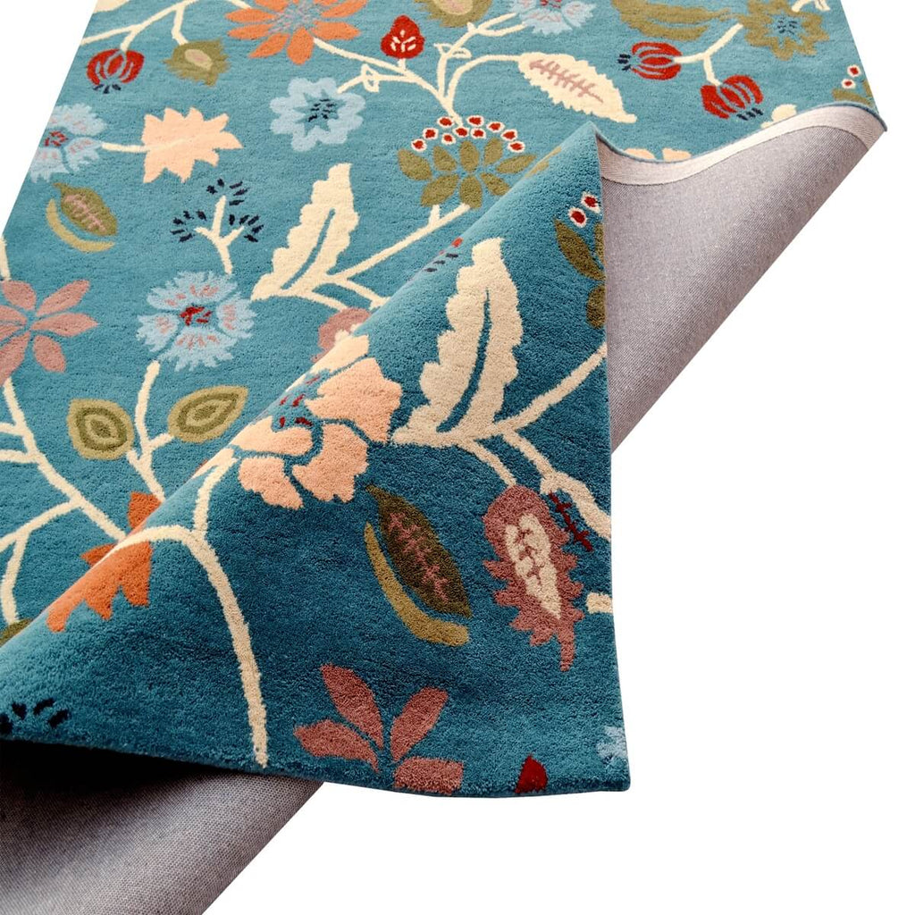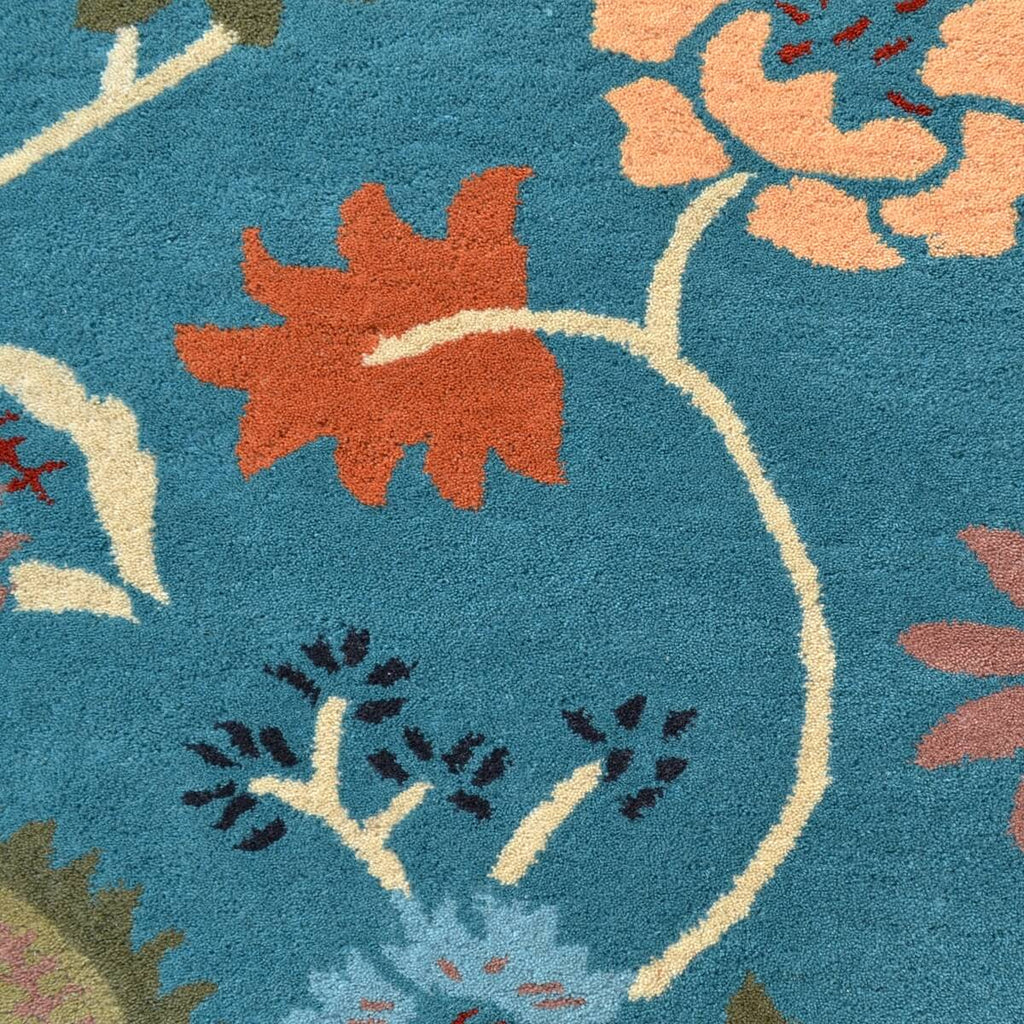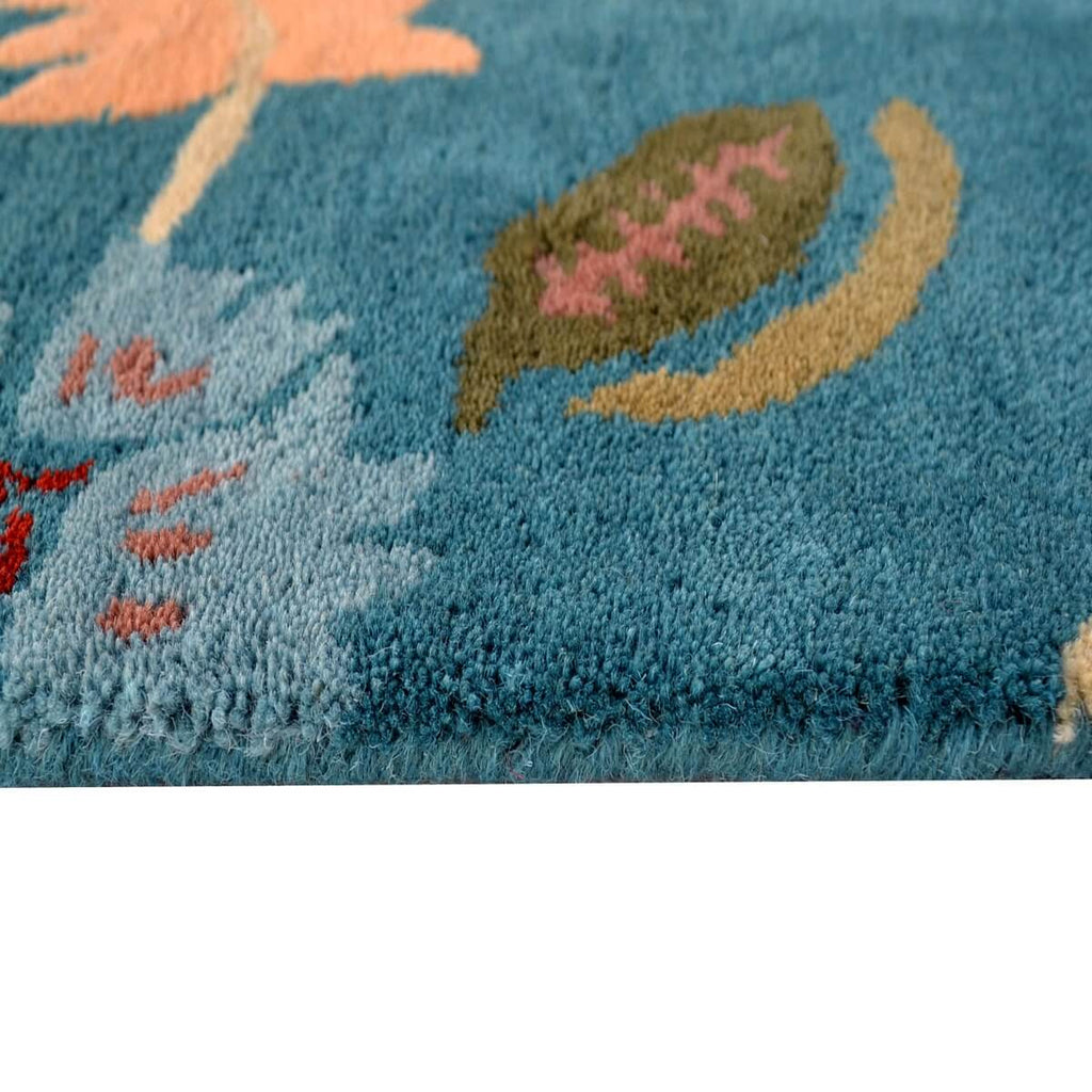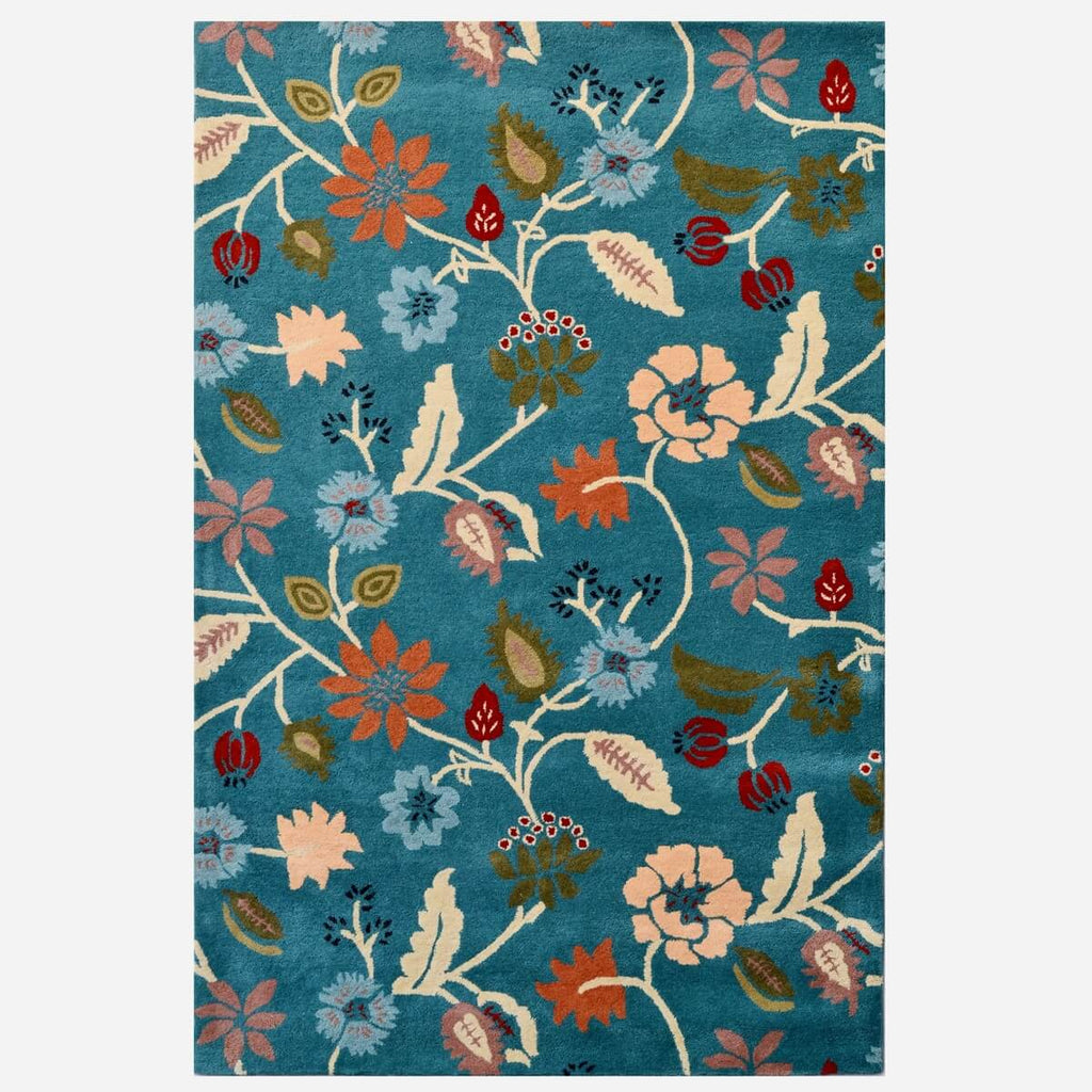 Botanical Handmade Woolen Rug - Teal Blue (Available in 3 Sizes)