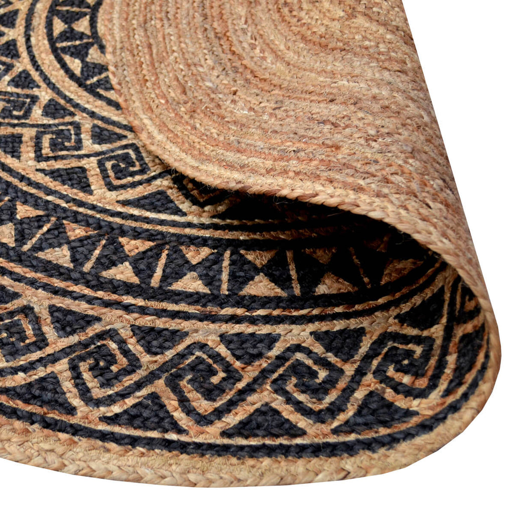 Braided Hand Woven Jute Rug - Black - Round 120cms