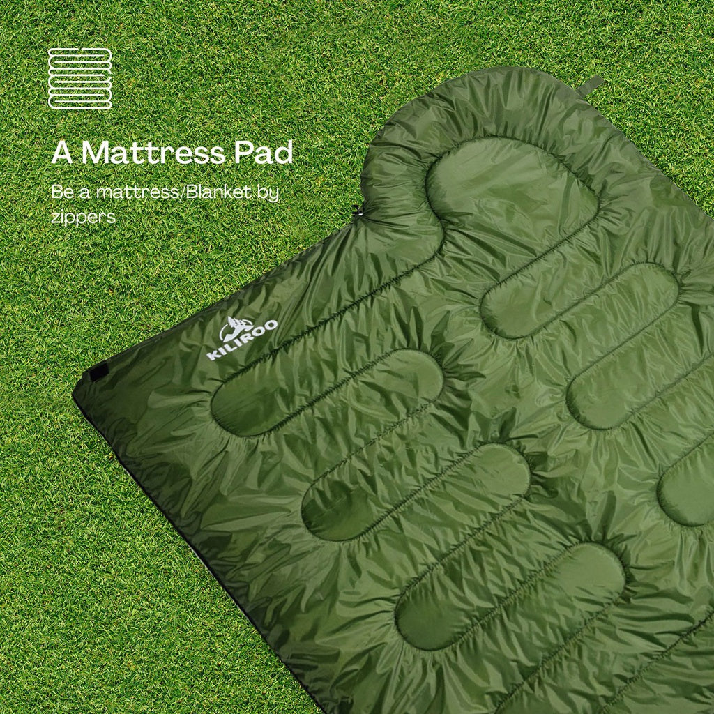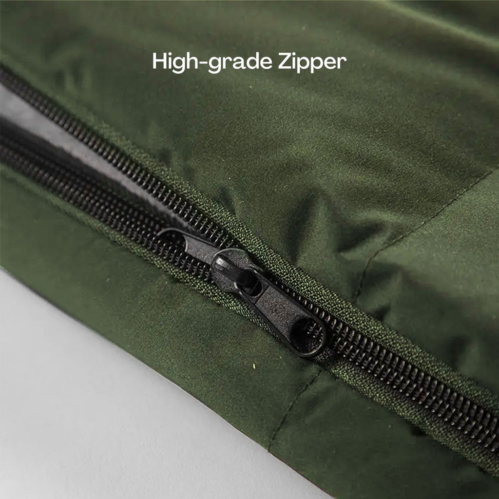 Our sleeping bag has full length dual zippers that let you open and close it with ease. You can also unzip it all the way and use it as a blanket or a quilt, if you like. The choice is yours, no strings attached!