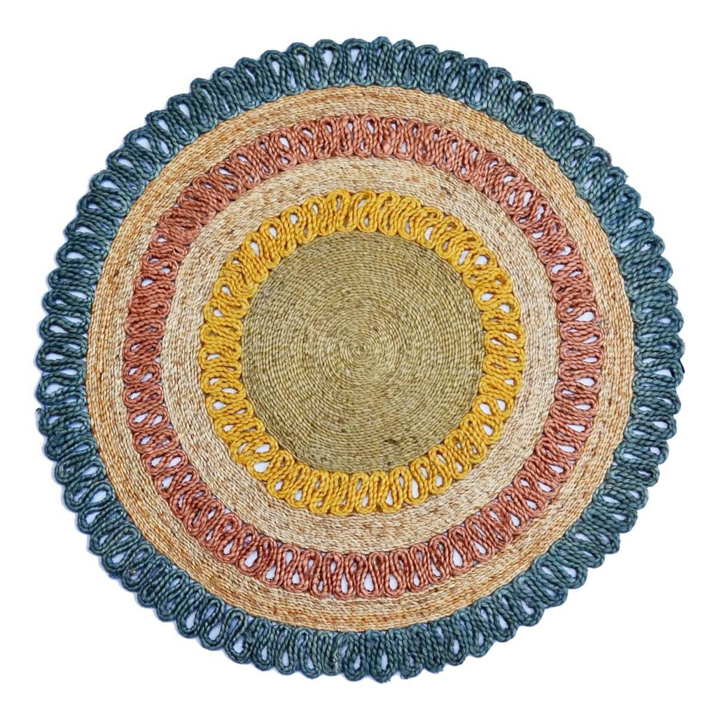 Add a celestial touch to your home with this 120cm round handwoven jute rug. Featuring a vibrant multi-colored crochet pattern, it adds a unique flair and a bold look to any space. Take a risk and enjoy the adventure!