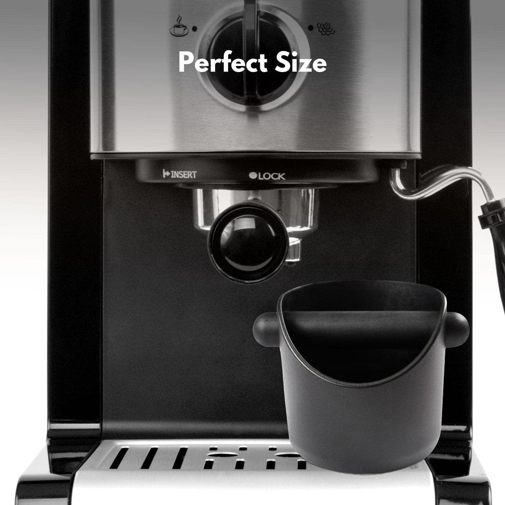 - SIZE MATTERS: The knock box is big enough to hold a decent amount of coffee pucks and the size is perfect for storing underneath most espresso machines. You won't have to empty it too often or struggle to find a place for it.