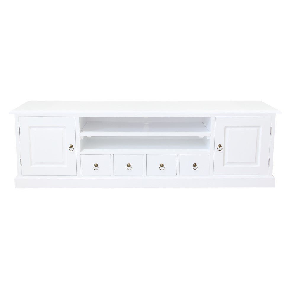 This contemporary white entertainment unit features 2 doors and 4 drawers, providing ample storage for your media devices. Its sleek design adds a touch of modernity to any living space. Crafted with quality materials, this unit offers durable functionality. Perfect for organizing and showcasing your entertainment essentials.