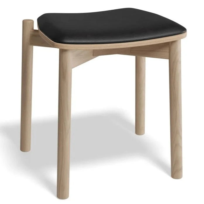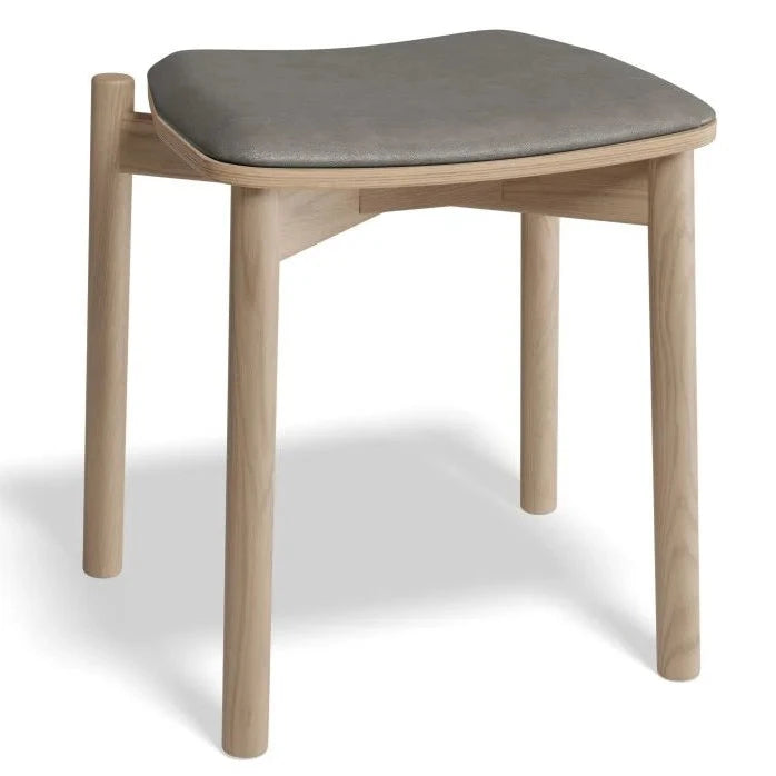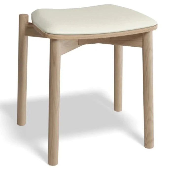The Cushion Padded Natural Low Stool 45cms is both compact and stylish, with a natural stained American ash frame and options for faux leather. No assembly required, making it convenient for immediate use. With the added feature of being stackable, it's easy to store and transport.