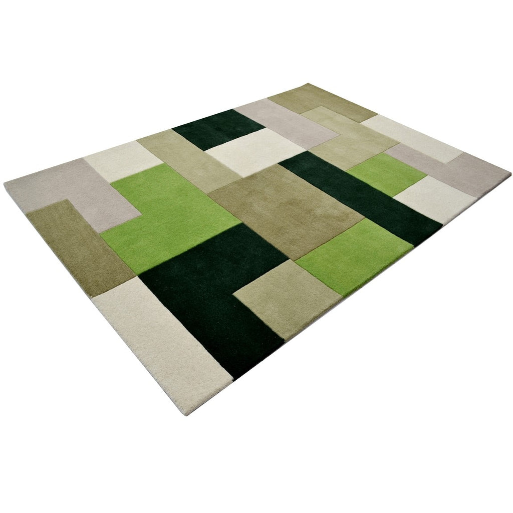 Designer Blocks Handmade Wool Rug - Green (Available in 3 Sizes)