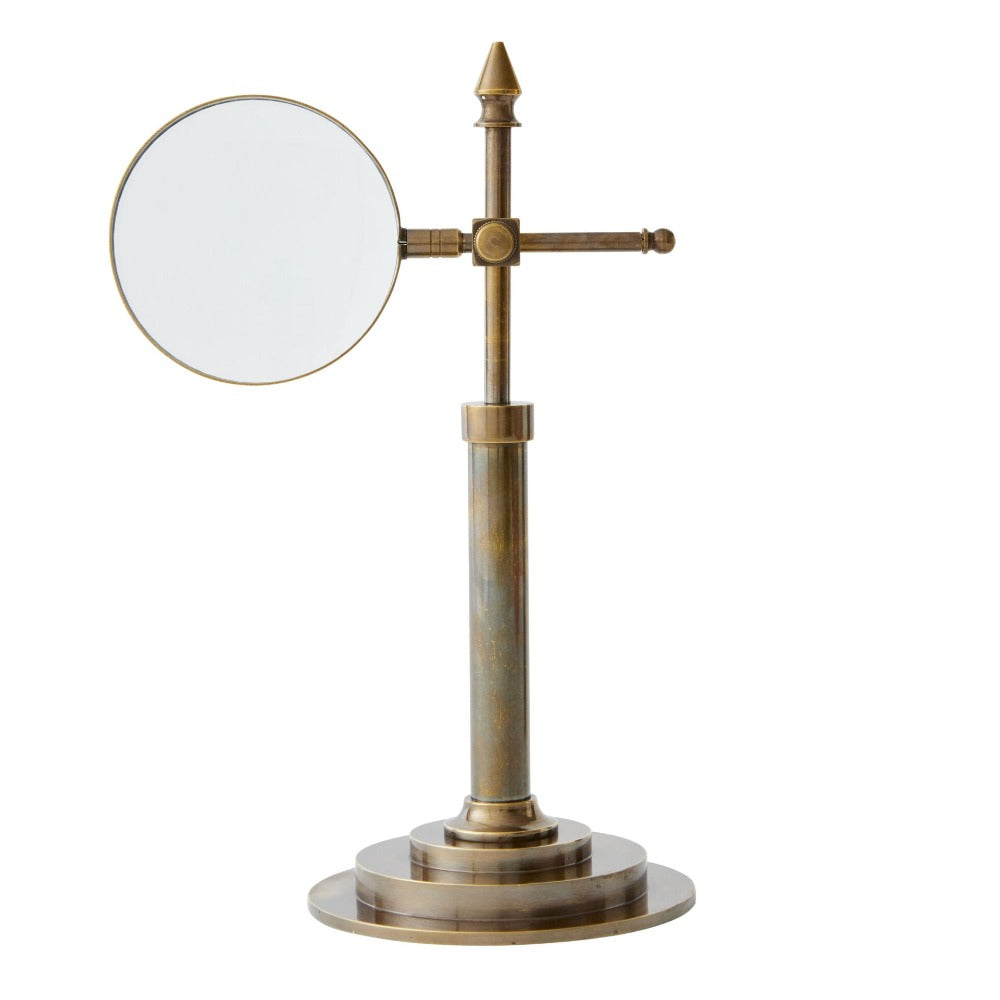 Expertly crafted in bronze, this Desktop Brass Magnifier on Pedestal is a timeless addition to any desk. Its classic design and adjustable height make it both functional and stylish. Enhance your work with precision and elegance.