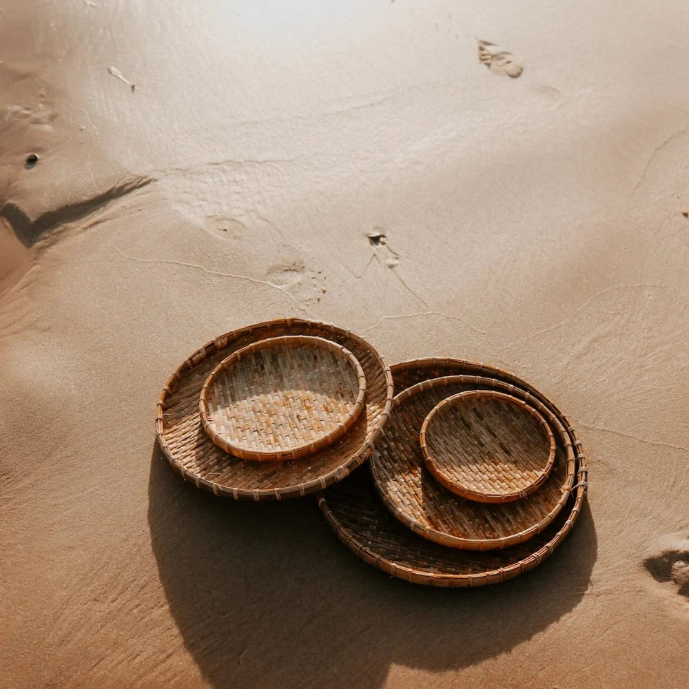 Expertly crafted with durable bamboo material, this set of 5 circle trays not only adds a touch of natural elegance to your home décor but also provides long-lasting use. Perfect for serving snacks, organizing small items, and more. Upgrade your living space with these versatile and eco-friendly trays.