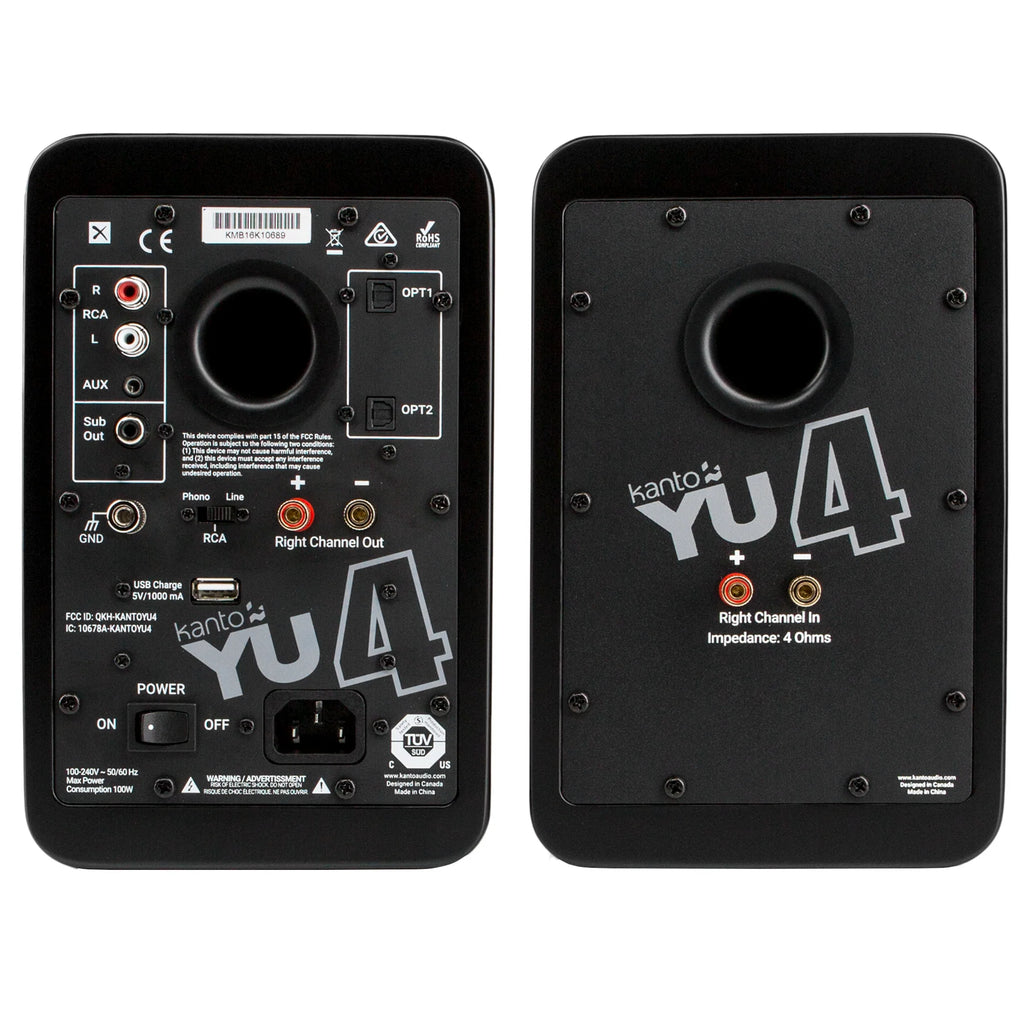 - Each speaker measures 5.5" W x 7.5" D x 8.7" H (14 x 19 x 22 cm)