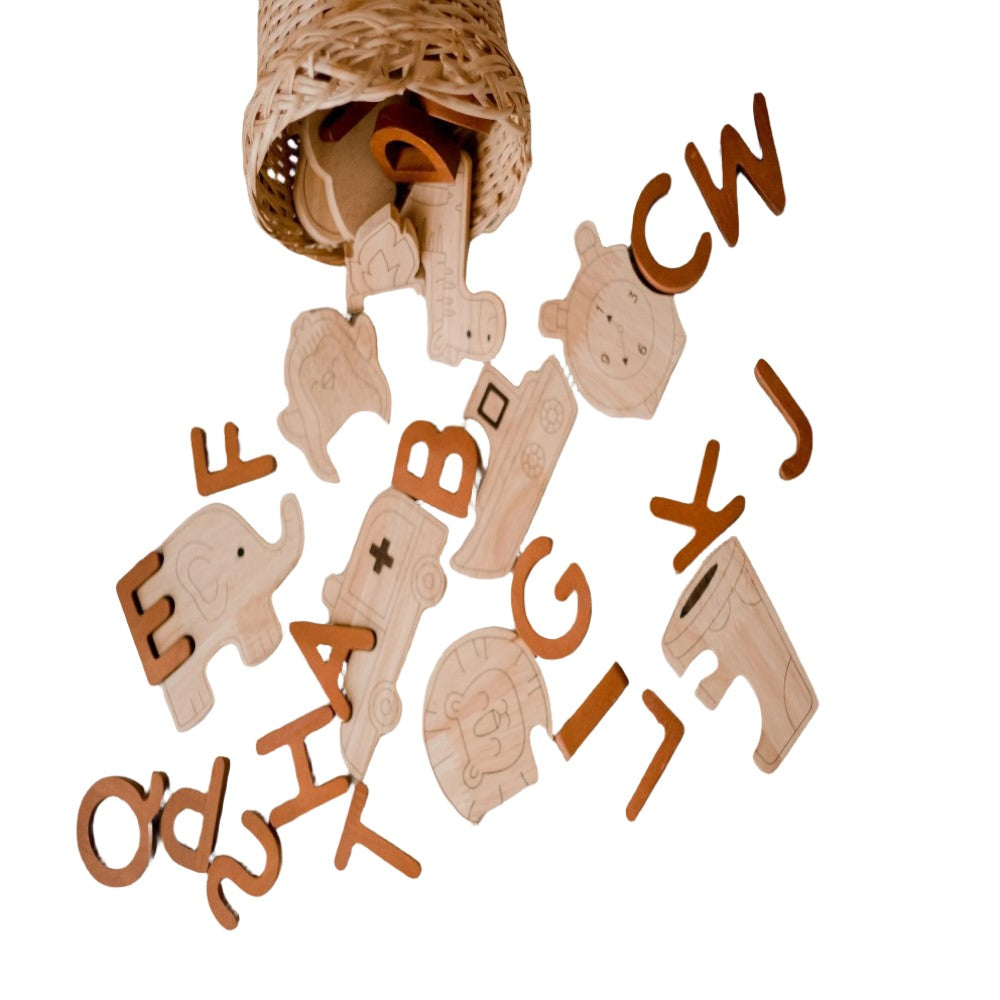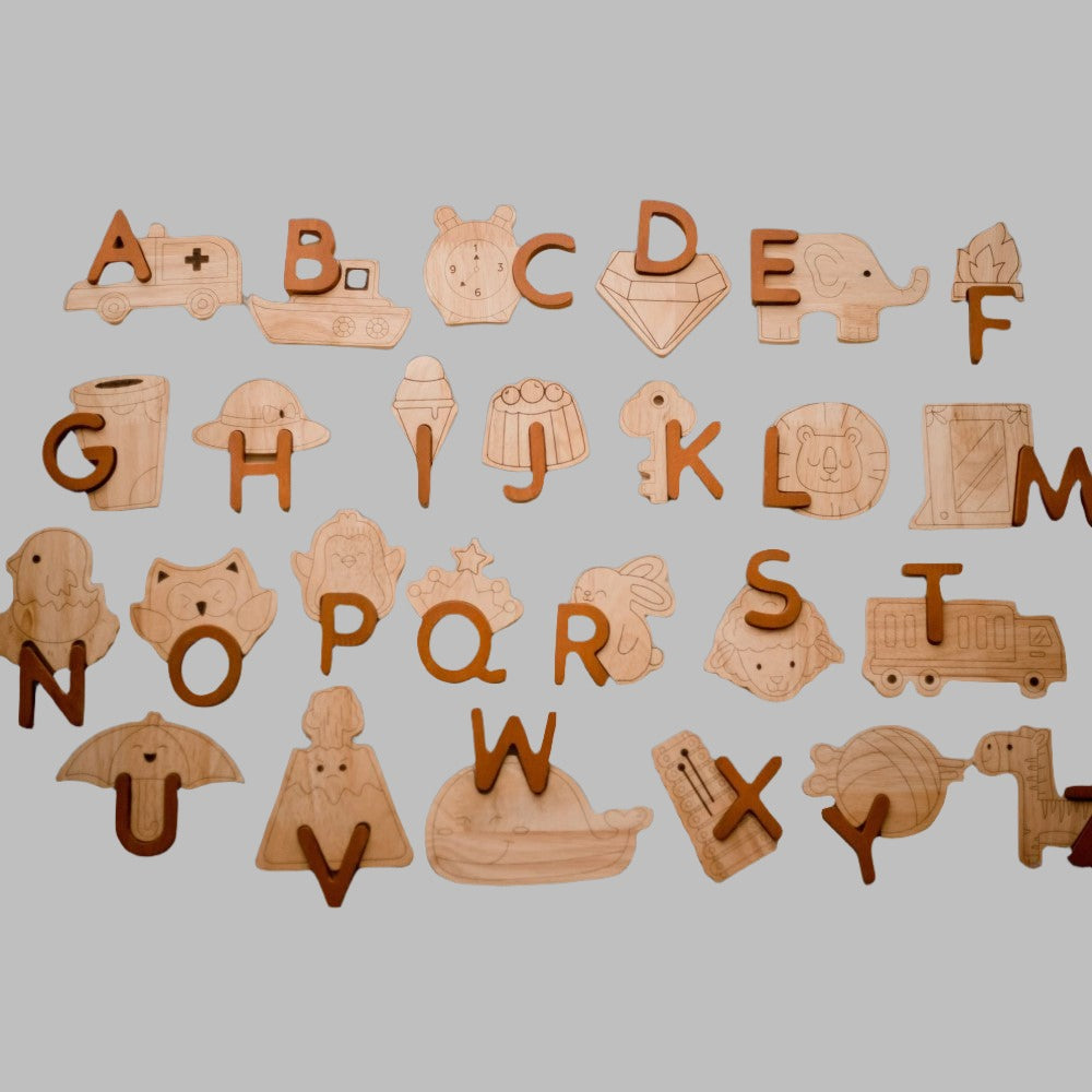 This set of dynamic wooden alphabet jigsaw puzzles offers an engaging and educational learning experience. With its durable wooden construction, each letter piece is designed to provide a hands-on learning opportunity, aiding in the development of fine motor skills and early literacy.