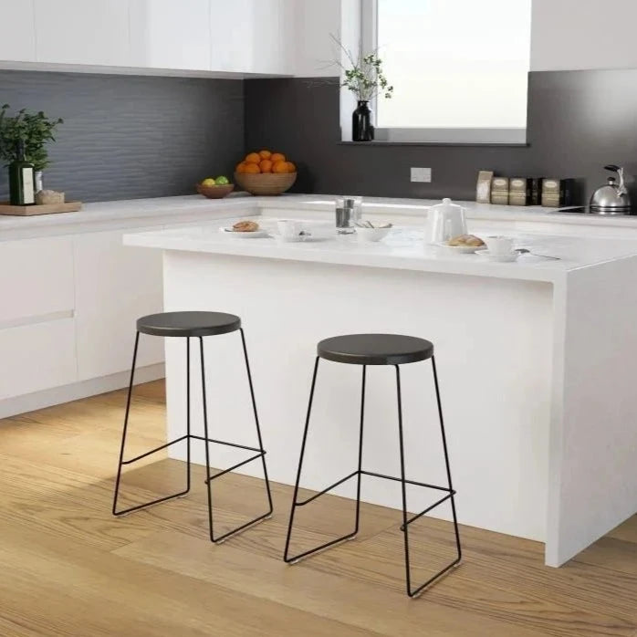 The Ebony Round Seating Black Base High Stool is perfect for high-traffic areas and commercial use. Its sturdy, solid steel frame is coated with black powder to maintain a sleek, modern appearance. A great addition to any modern cafe, bar or restaurant, and a must-have for furniture outfitters.