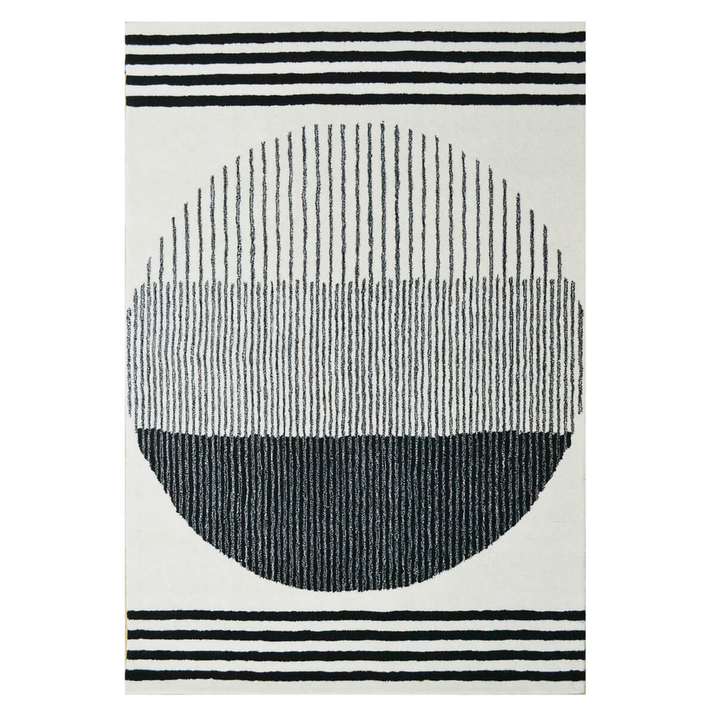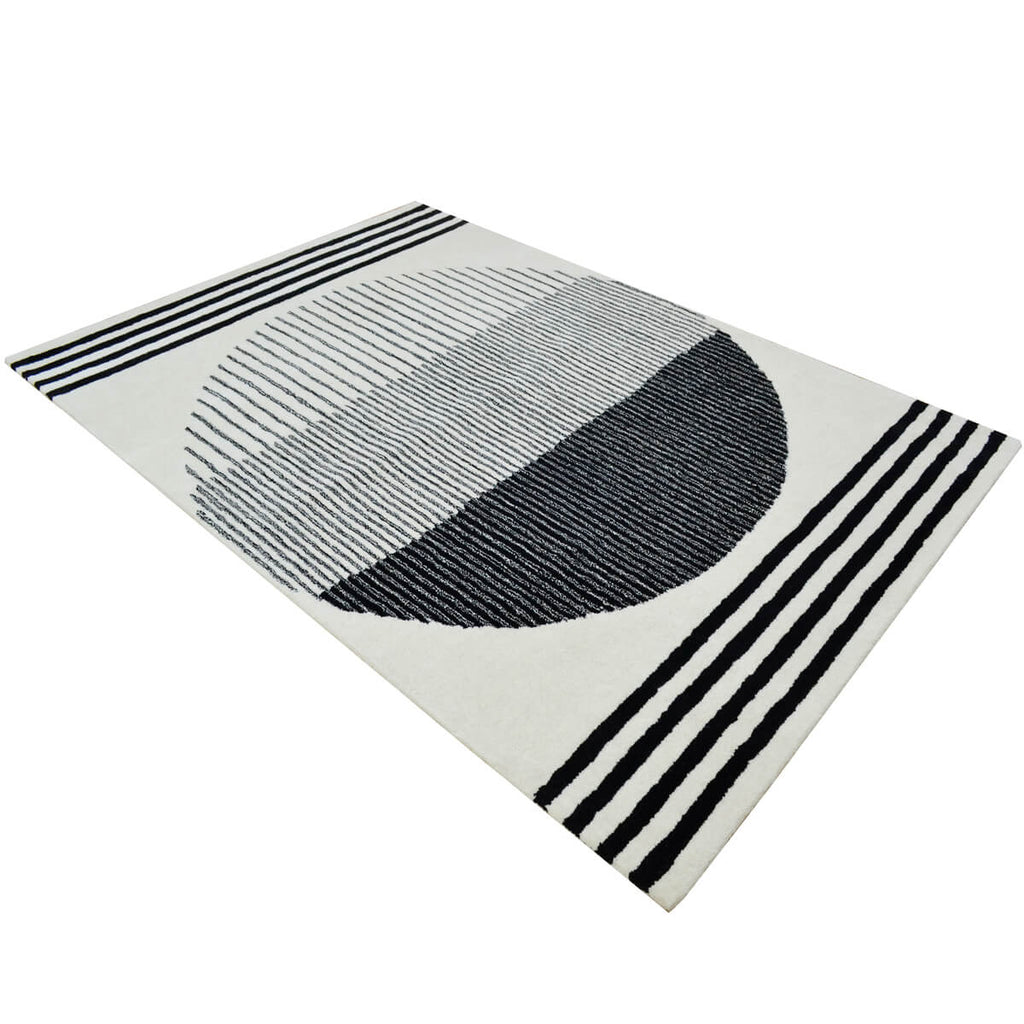 Step out of the ordinary and explore the beauty of the eclipse with this one-of-a-kind rug! Handmade from woolen fibers, it exudes boldness with its black gradient eclipse design on an ivory background. Be fearless, be daring, and let this rug take your home decor to the next level.