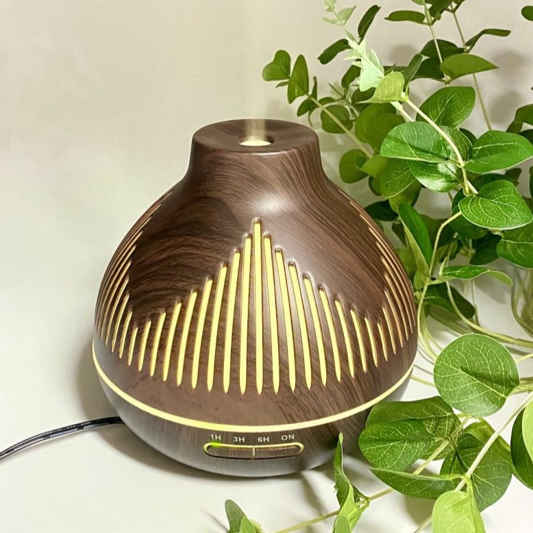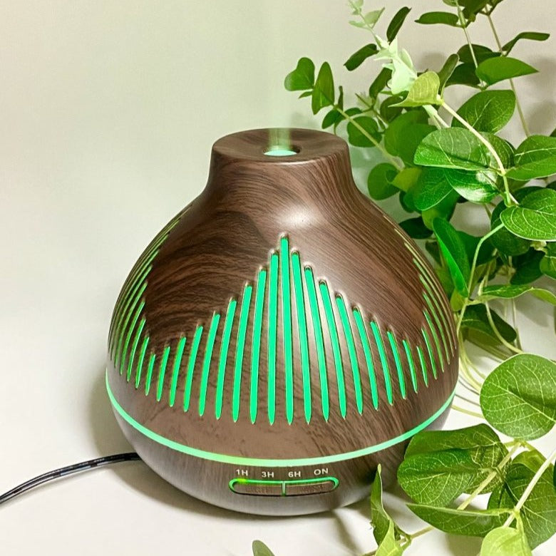 Enhance the ambiance of any space with our Elegant Aroma Diffuser in a beautiful wood grain finish. Choose from 2 calming colors that will complement any decor. Enjoy the benefits of aromatherapy while adding a touch of sophistication to your home or office.