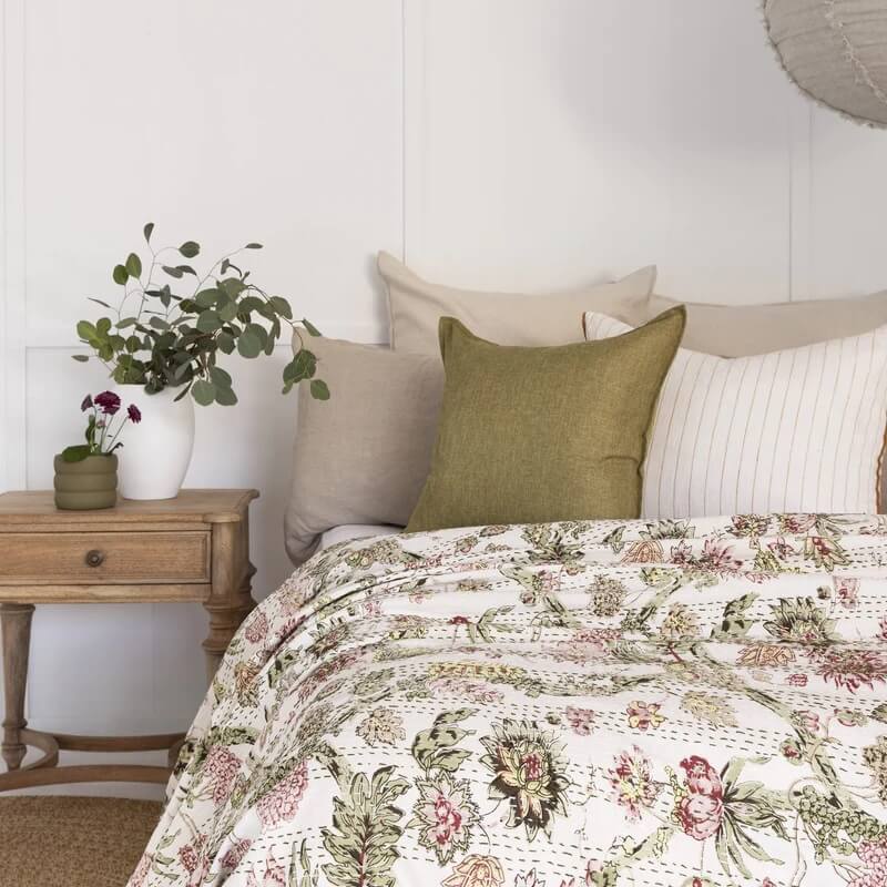 Floral Print Design Hand Made Cotton Doona King Size - Cream
