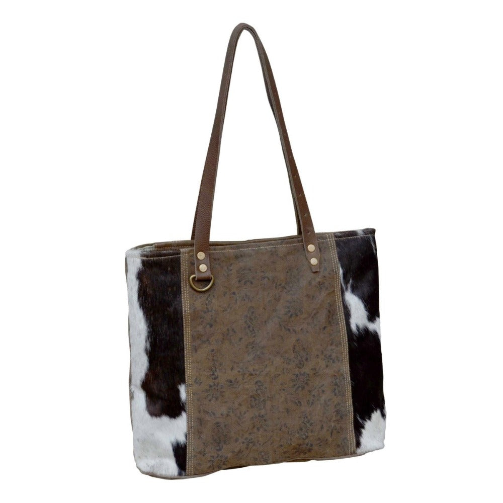 Flori Cowhide Shoulder Bag surely a stunning blend of genuine leather and cowhide accents. This handbag features beautiful floral designs on the main leather panels, adding a touch of elegance. The real cowhide side panels offer a unique and stylish look. With leather handles for easy carrying, a large zipped main compartment, and a zipped interior pocket, this bag provides ample space for your essentials. Available in a rich Chocolate color, it's the perfect accessory to complement your outfit with sophistication.