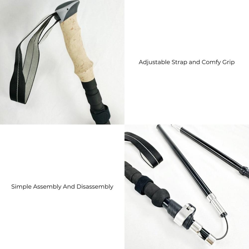 Our trekking pole handle is made with an ergonomic anti-slip cork grip which helps keep your hand dry and provides a firm grip in muddy areas while keeping your hand comfortable throughout your hike. -
