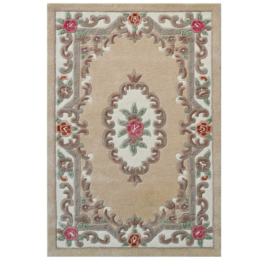 French Floral Handwoven Woolen Rug - Beige (Available in 3 Sizes)