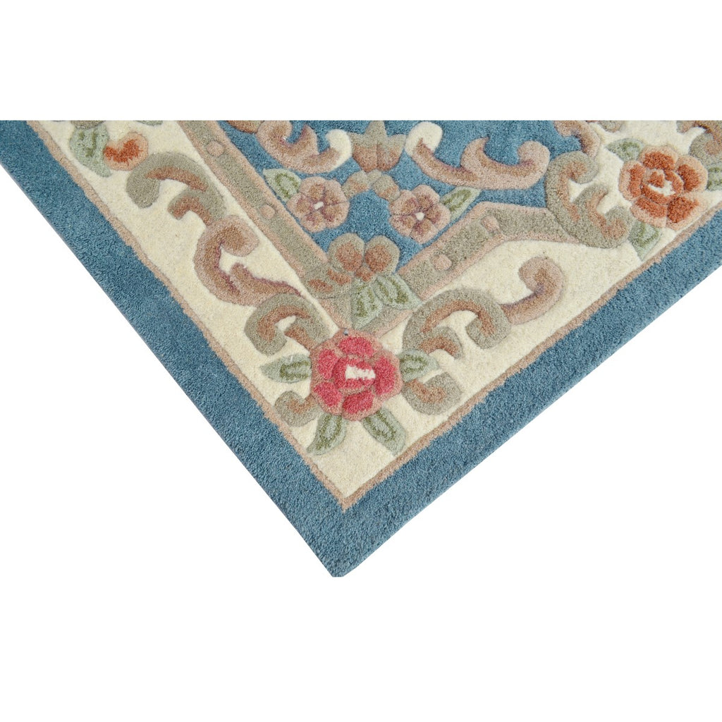 French Floral Handwoven Woolen Rug - Blue (Available in 3 Sizes)