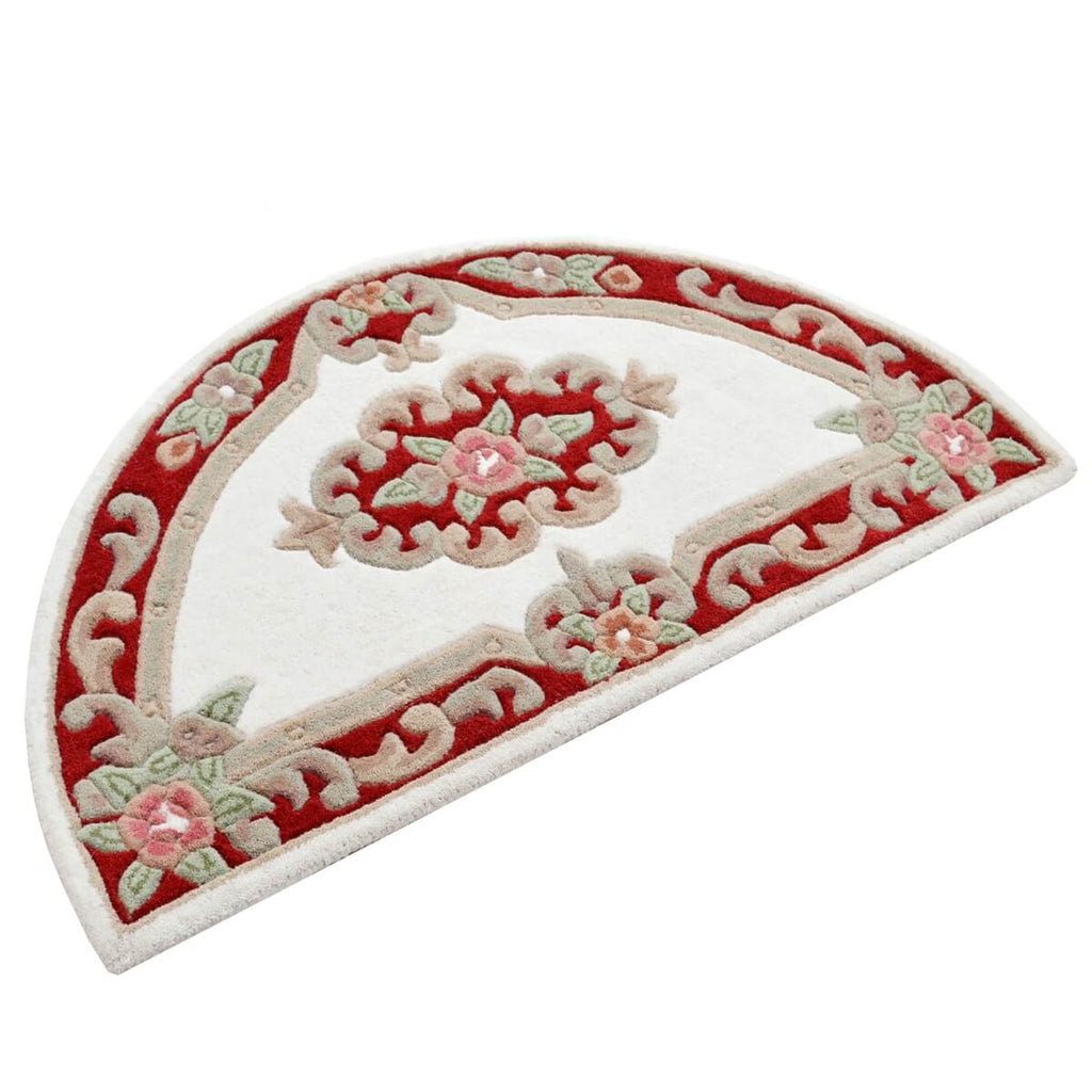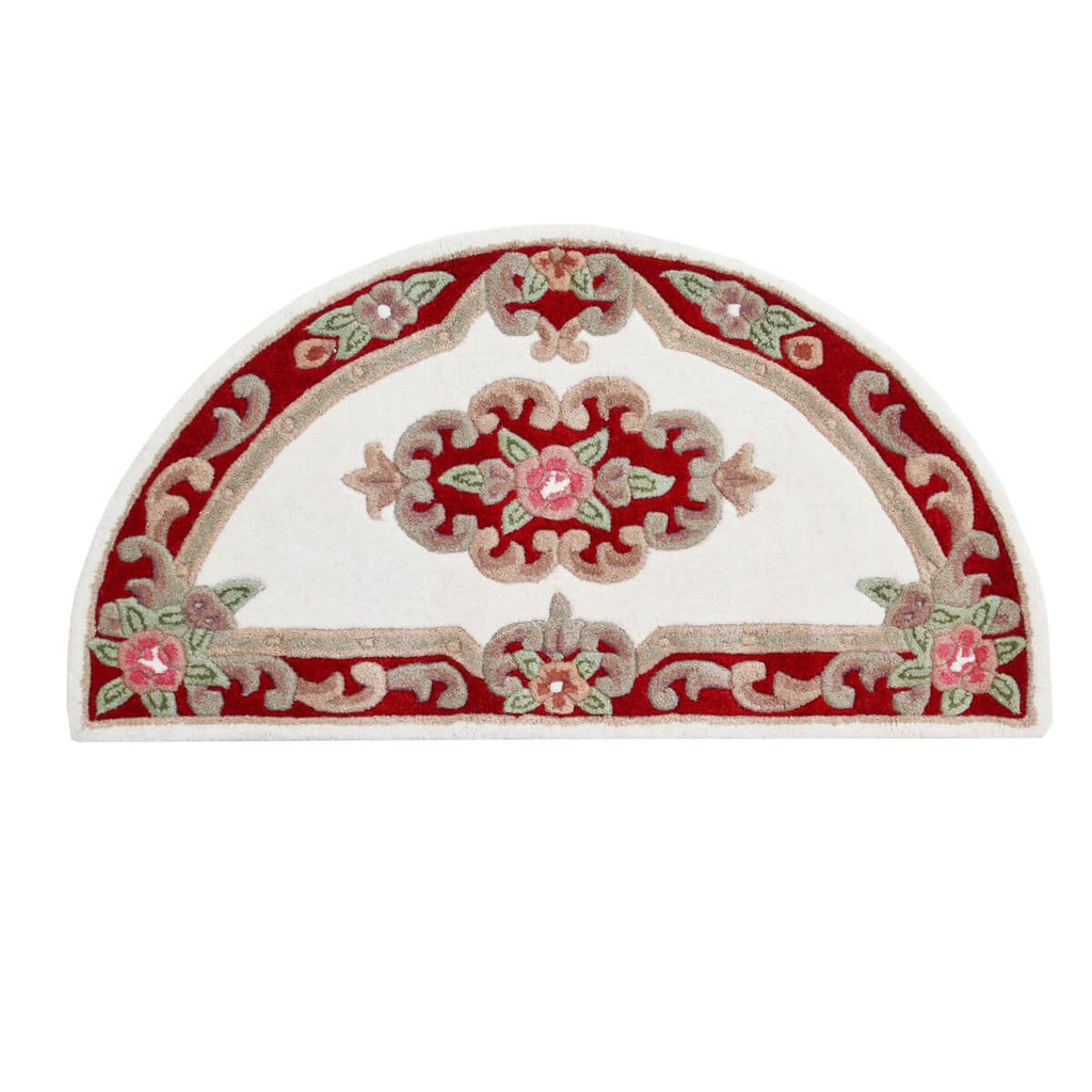 French Floral Handwoven Woolen Rug - Ivory / Red - Semicircle
