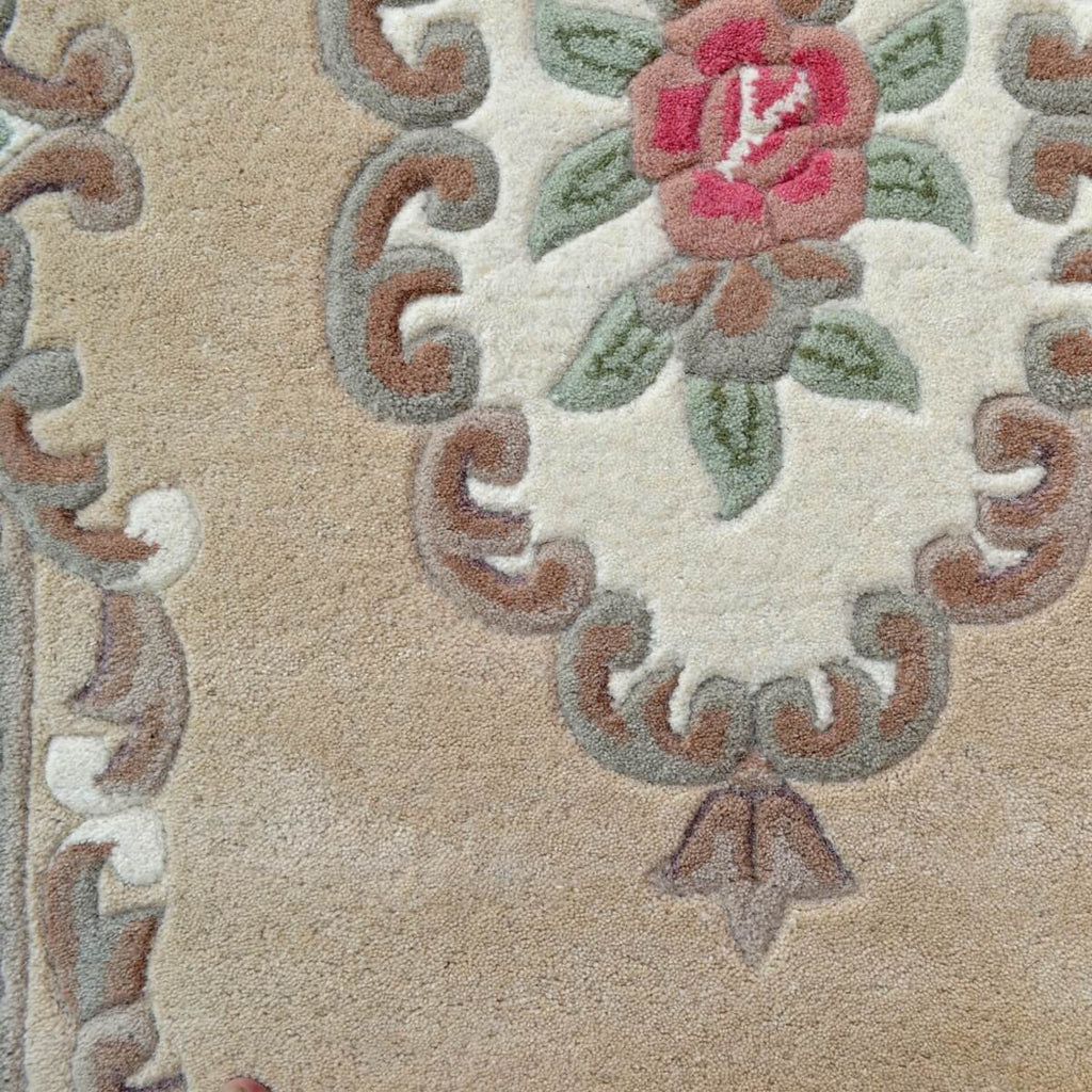 French Floral Handwoven Woolen Rug - Beige - Semicircle
