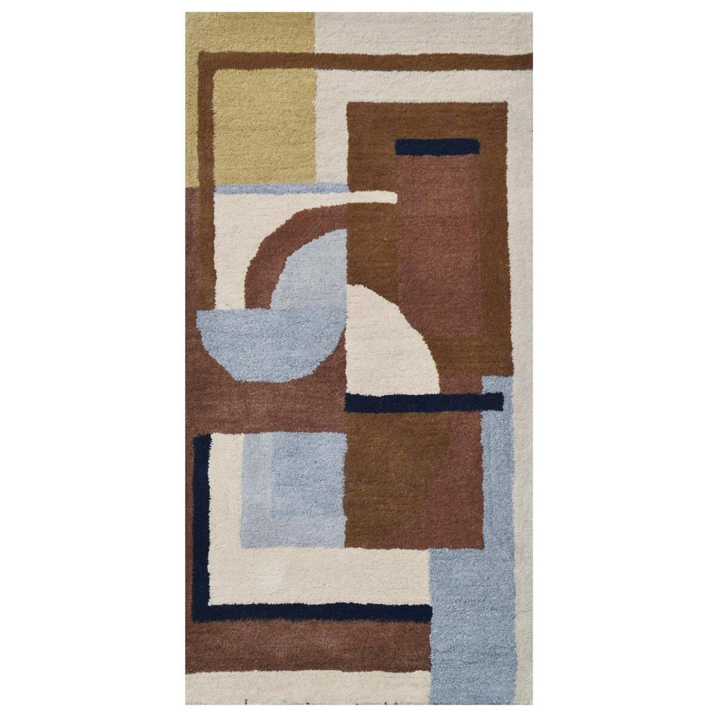 Step out of your comfort zone with this handmade woolen rug! Bursting with bold blues and browns, it's the perfect piece to add an adventurous spin to any space. It's sure to bring a unique and modern vibe to your home!