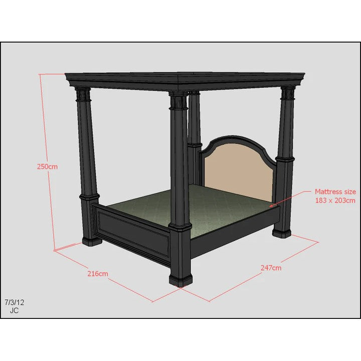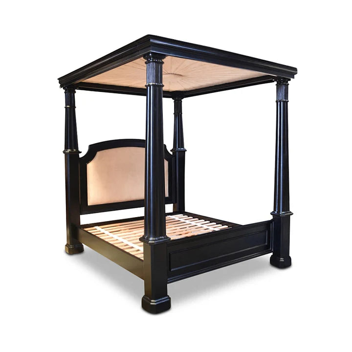 Experience luxury and elegance with our Grand Monticello Four Poster King Size Bed in a sleek black finish. Crafted with expert detail, this bed exudes class and sophistication, making it the perfect centerpiece for your bedroom. Transform your sleeping space into a regal sanctuary with this stunning four poster bed.