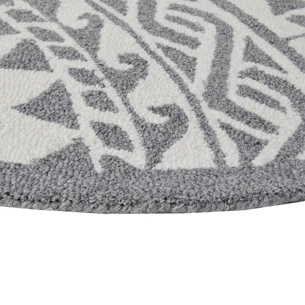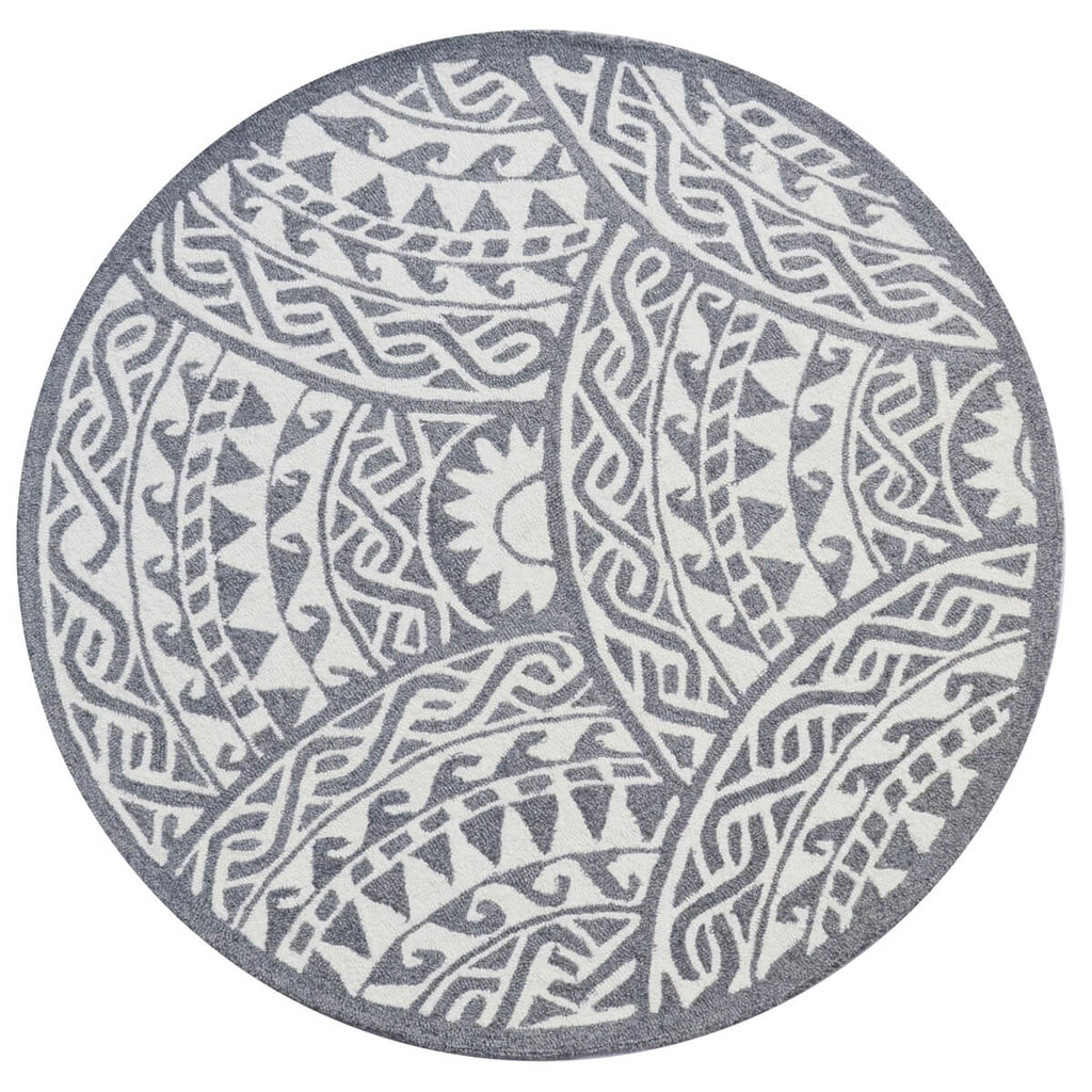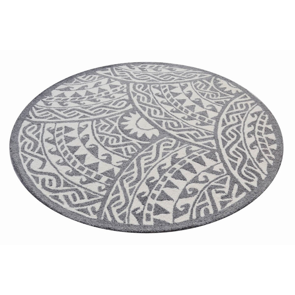 Grey Patch Pattern Handmade Woolen Rug - Round