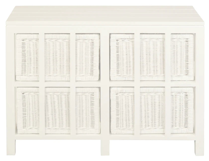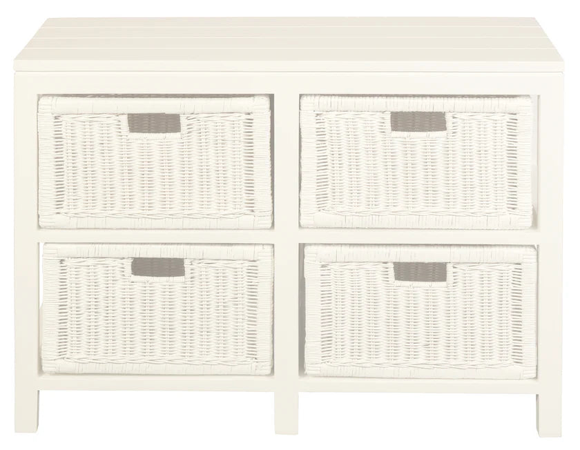 Expertly handcrafted with a beautiful white rattan finish, this 4-drawer cabinet adds a touch of elegance and functionality to any room. Perfect for storing clothing, linens, or other household items, the four deep drawers provide ample storage space. Upgrade your home decor with this stunning cabinet today.