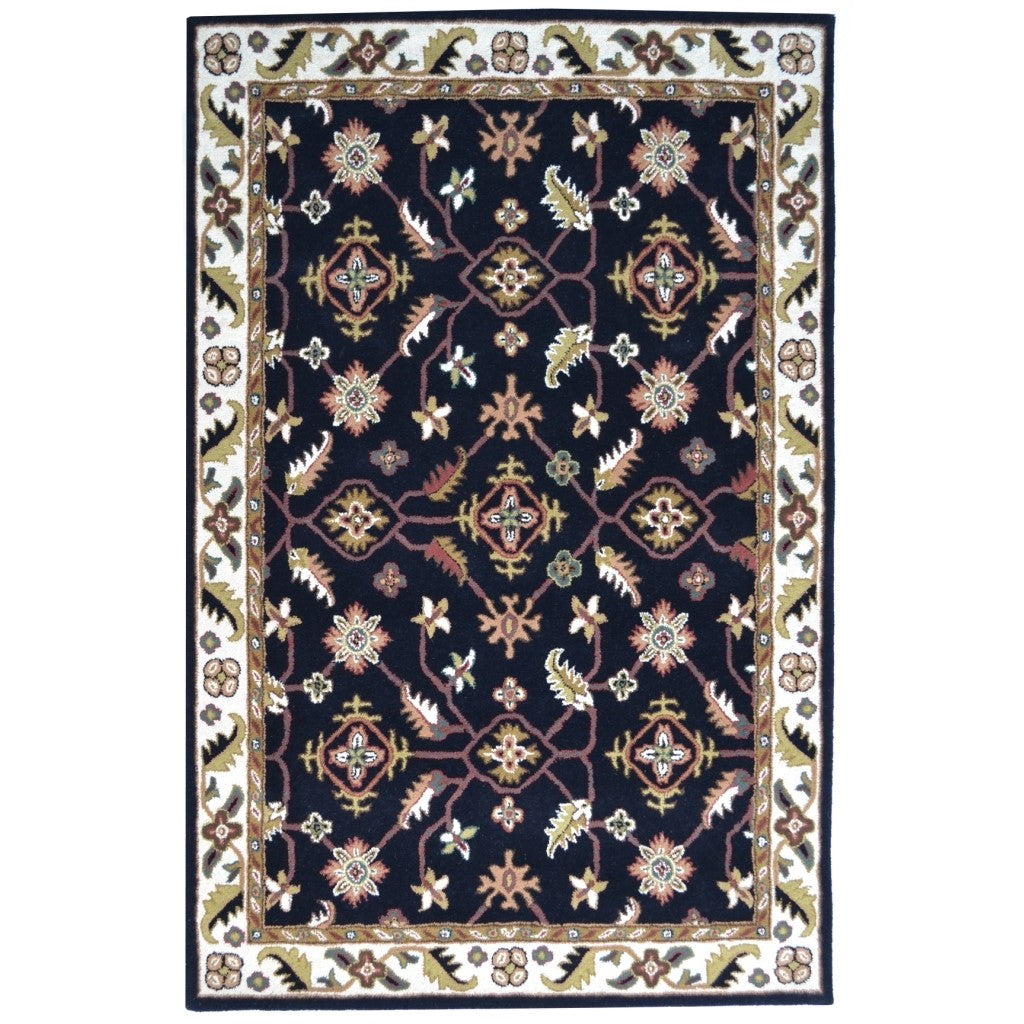Handmade Black & Cream Floral Wool Rug (Available in 4 Sizes)