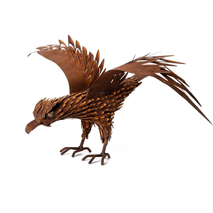 Unleash the wild with Hawk Outdoor Rustic Metal Decor! This eye-catching piece features spikey metal feathers, shapey claws, and wings wide spread for an added edge to your outdoor space. Crafted from metal and finished with a rustic aesthetic, it's sure to bring out the adventurer in you!