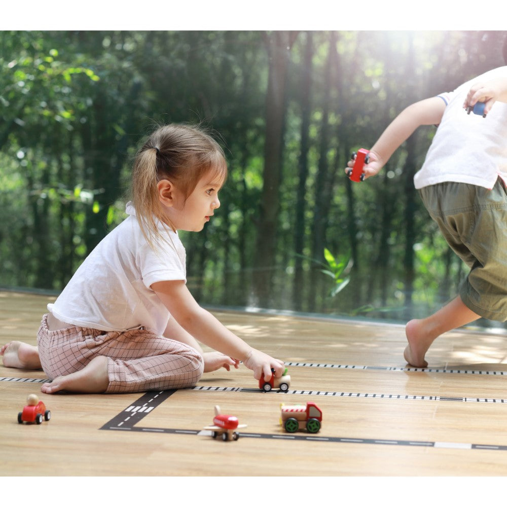 Get your little ones ready for endless fun and creativity with our Kids Construction Trucks With Road Tape Playset. Perfect for travel, this pack includes 8 meters of tape that can be used on any clean surface, guaranteeing hours of entertainment. With a wooden plane included, packing up is a breeze. Let their imagination run wild with this versatile and engaging playset.
