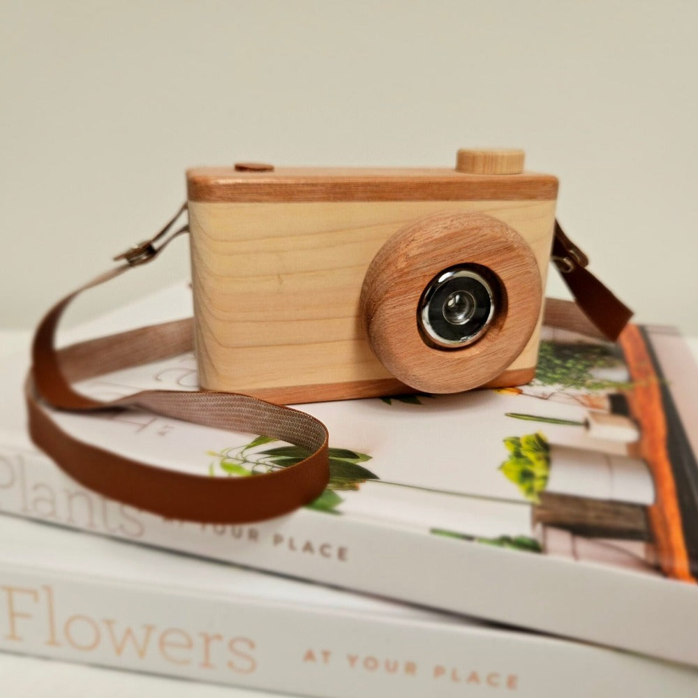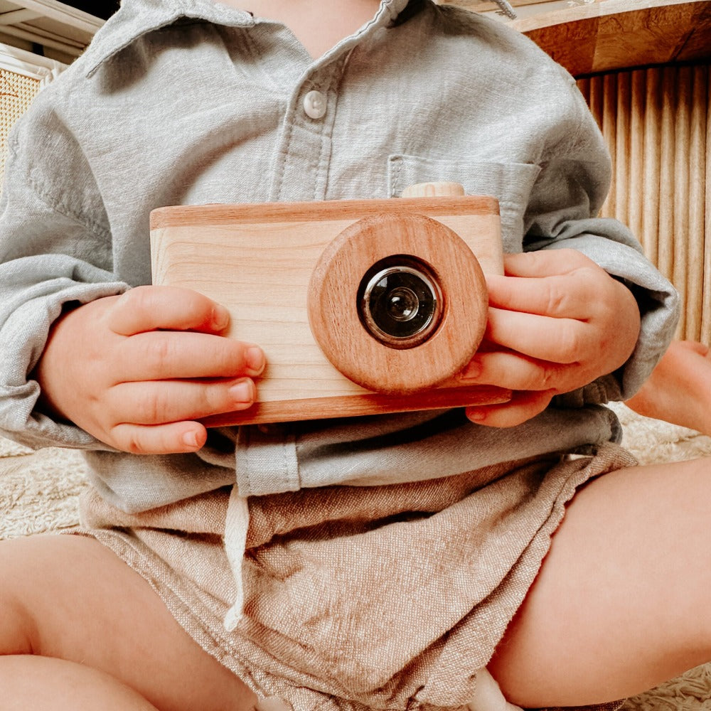Introduce your child to the world of photography with our Kids Wooden Miniature Camera. Made from durable and sustainable wood, this camera is perfect for little hands and encourages imaginative play. With its simple design and fun colors, this camera is sure to be a hit with your little one.