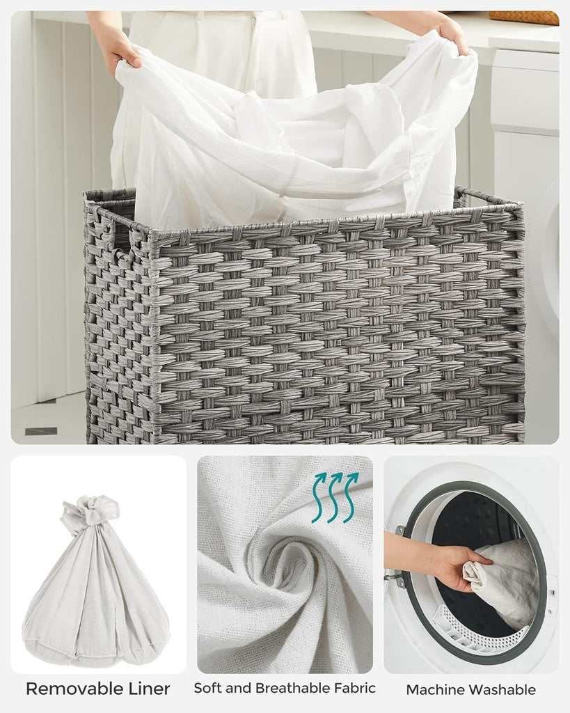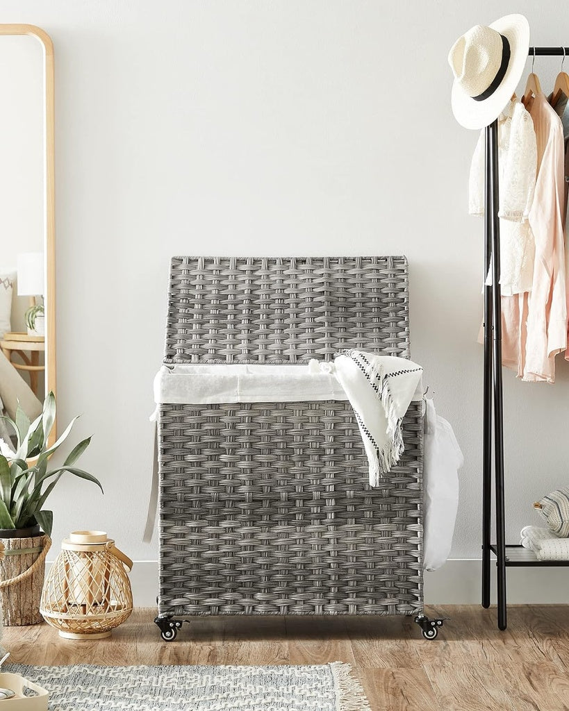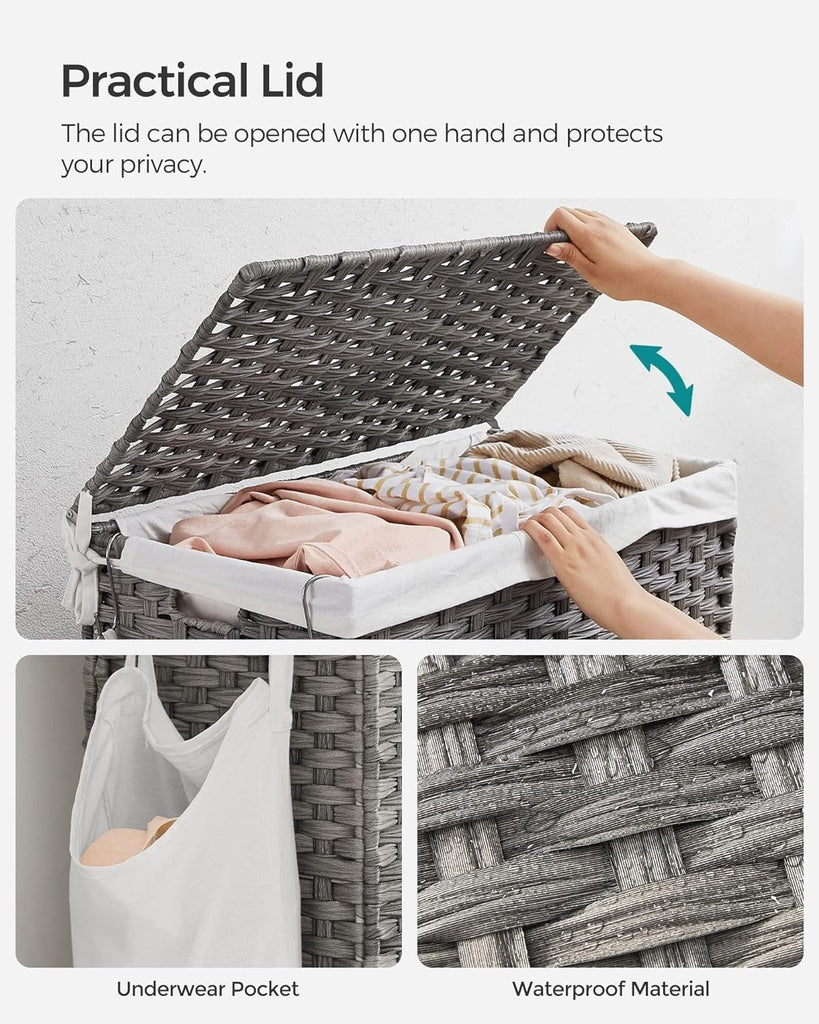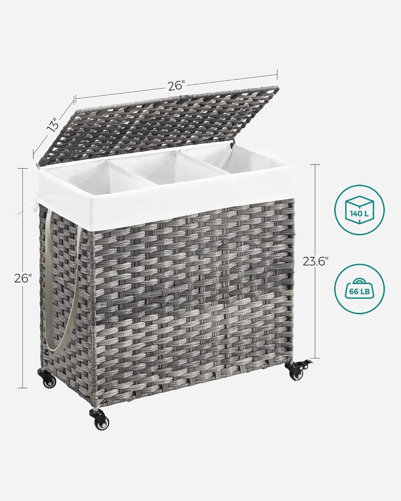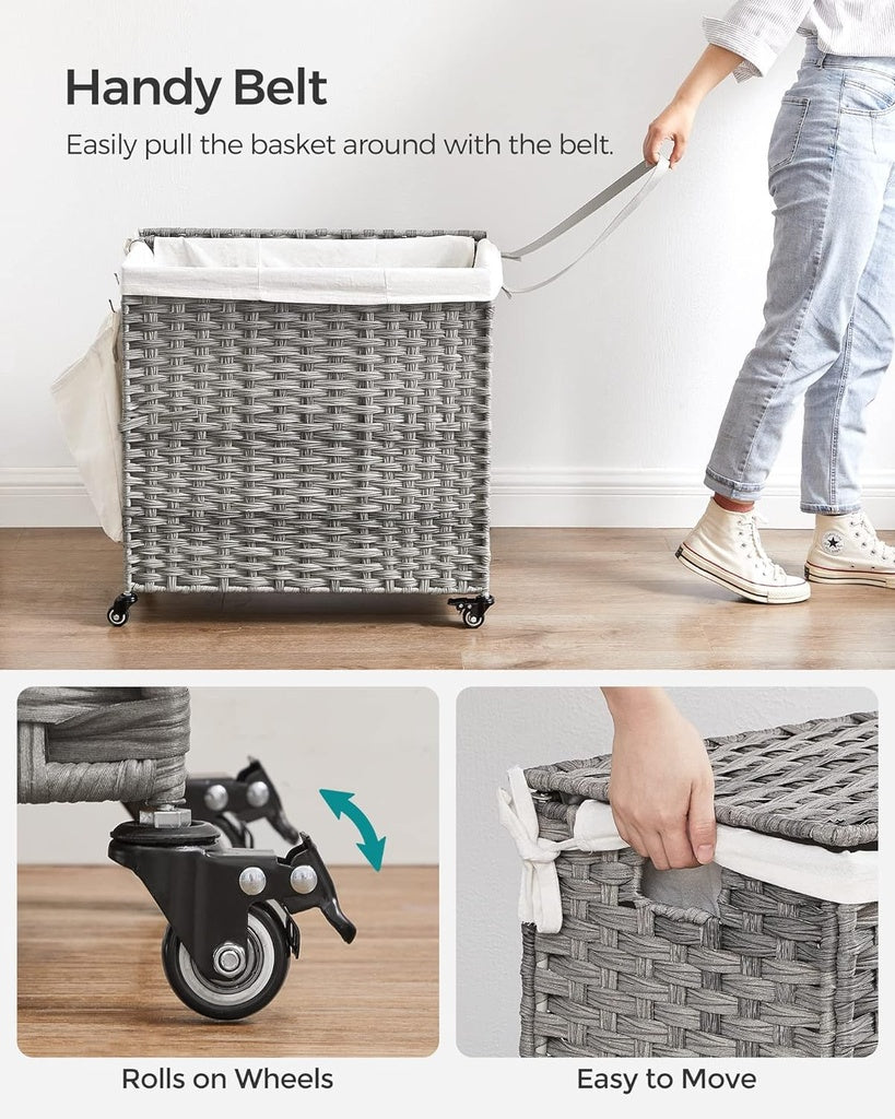 Waterproof, Ventilated & Sturdy: The breathable, waterproof PP rattan helps your clothes stay dry and well-ventilated while the sturdy metal frame makes this rolling laundry hamper robust enough to hold up to 66lb.