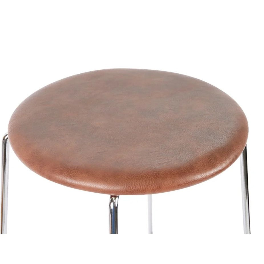 Elevate your hotel's seating options with our chrome base high stool. Its sturdy frame and easy assembly make it a great choice for busy environments. With a vintage PU round seat and timeless design, this bar stool is sure to impress your guests. Available in 4 colors.
