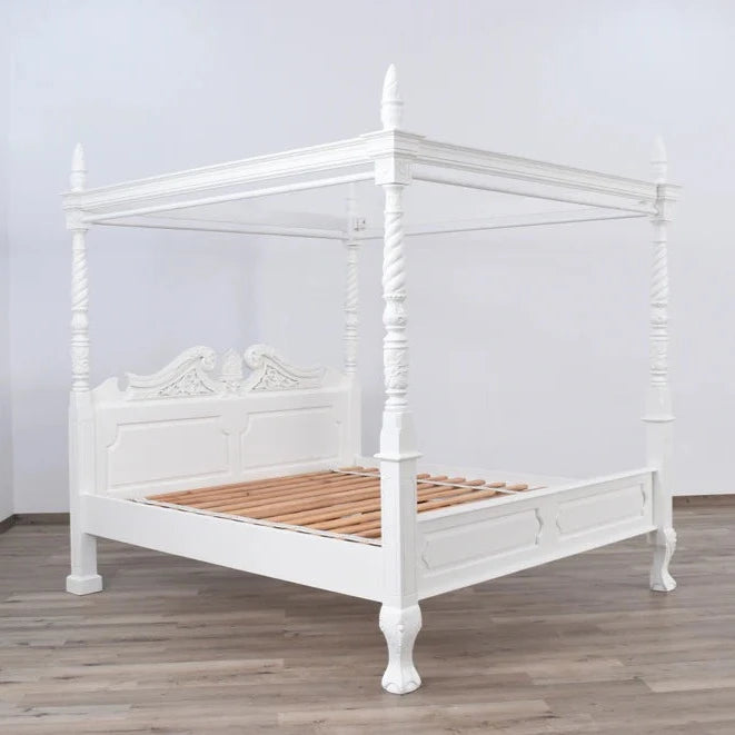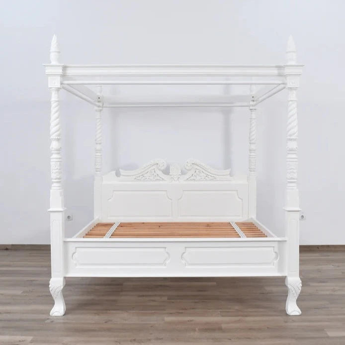 Upgrade your bedroom with the Majestic Queen Anne Four Poster King Size Bed. This elegant and classic white bed is fit for a king, with its beautiful Queen Anne style and impressive four poster design. Experience the luxury and comfort of a true king-sized bed in the stunning and timeless Majestic Queen Anne.
